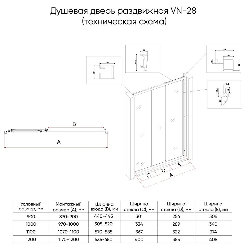 | Конструкция | Раздвижная однодверная/ вход 44-44,5 |