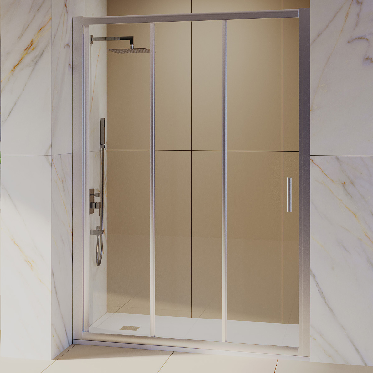 Профиль двери регулируемый, что позволяет легко подстроить его под размер вашей ванной комнаты. Роликовый подшипник обеспечивает плавное скольжение дверей и предотвращает их заедание.