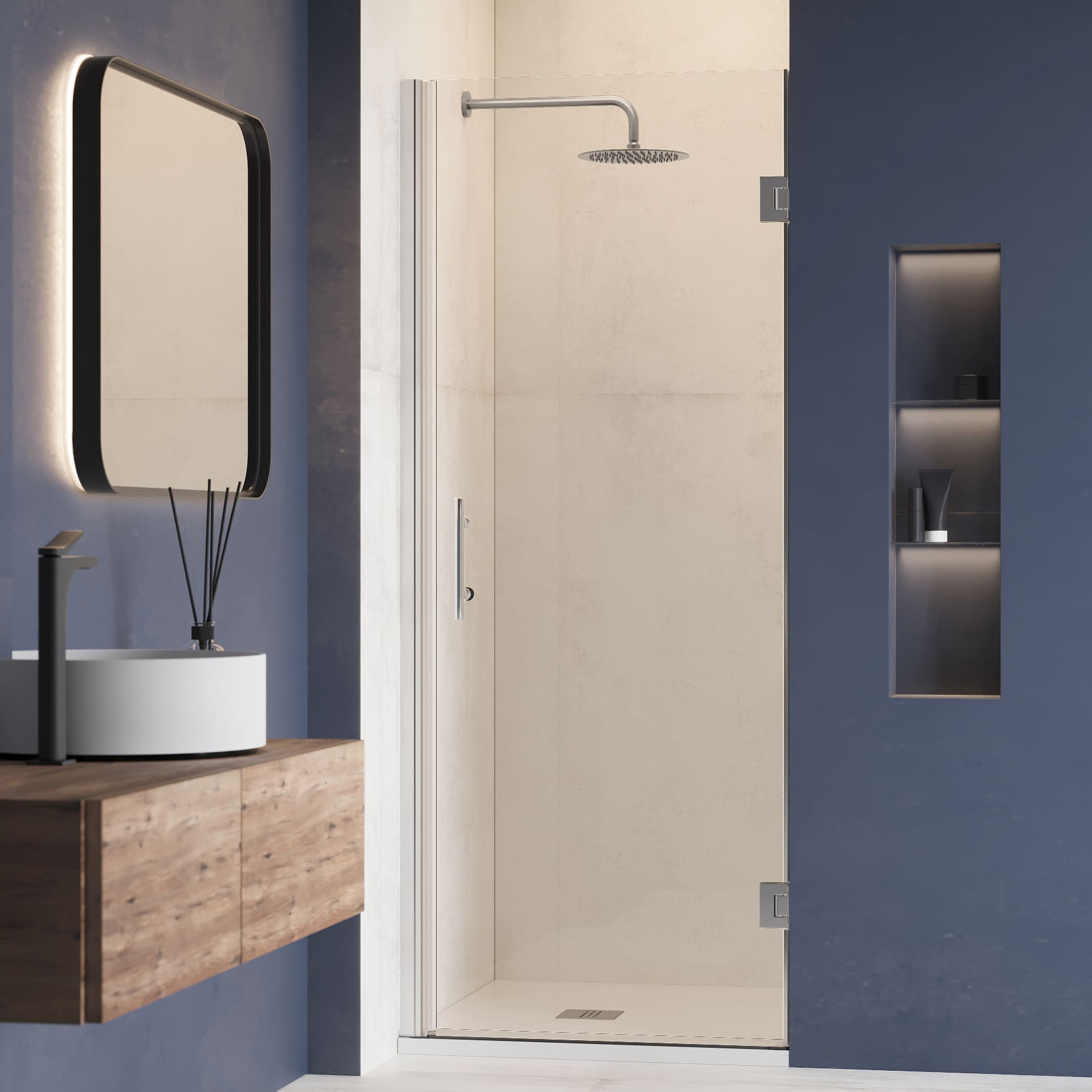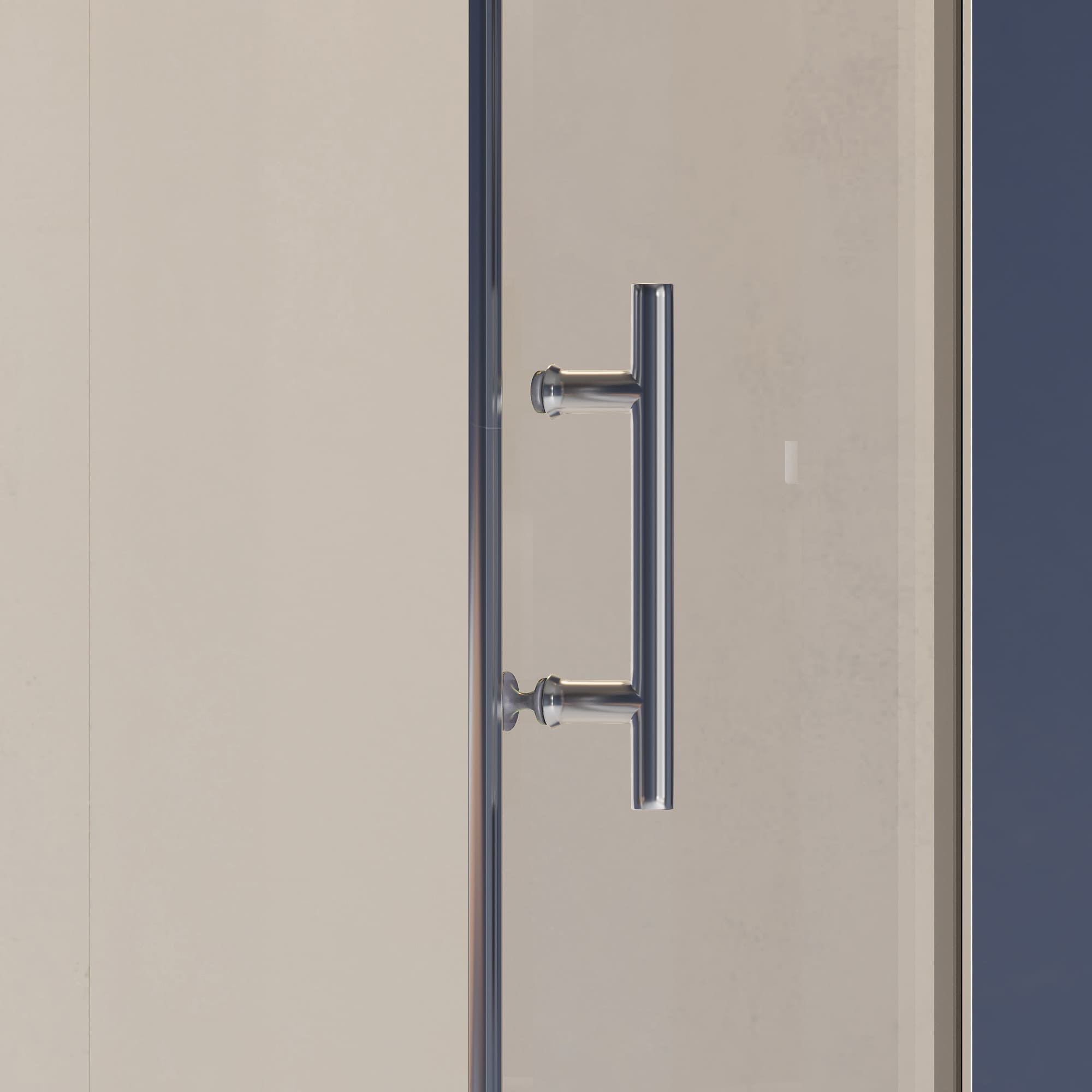 Цвет хромированного профиля идеально дополняет стекло, создавая элегантный и современный вид. Водонепроницаемые стальные петли гарантируют, что дверь не будет протекать, обеспечивая водонепроницаемое уплотнение и предотвращая утечку воды из душевой зоны.