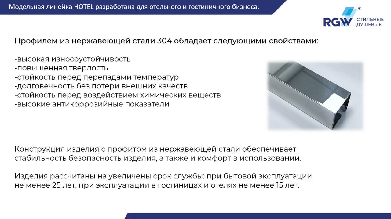 Регулируемый профиль позволяет адаптировать его под конкретную душевую зону. Механизм на роликовых подшипниках обеспечивает плавную и тихую работу, улучшая общее впечатление от принятия душа.