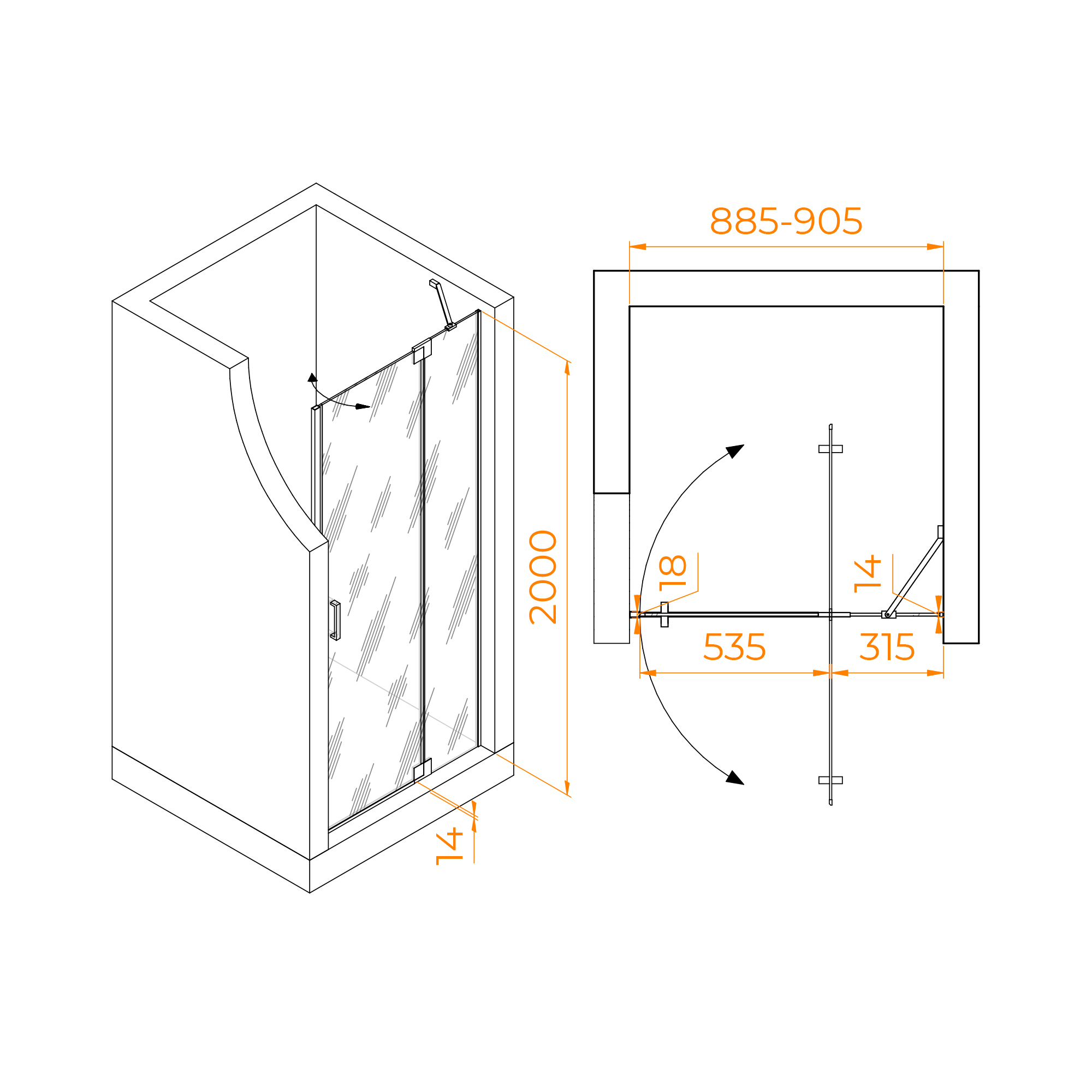 Магнитный уплотнитель гарантирует герметичность, а система Easy Clean облегчает уход за стеклом. Благодаря регулируемому профилю, дверь легко устанавливается на любую поверхность. Общая высота двери 2000 м.