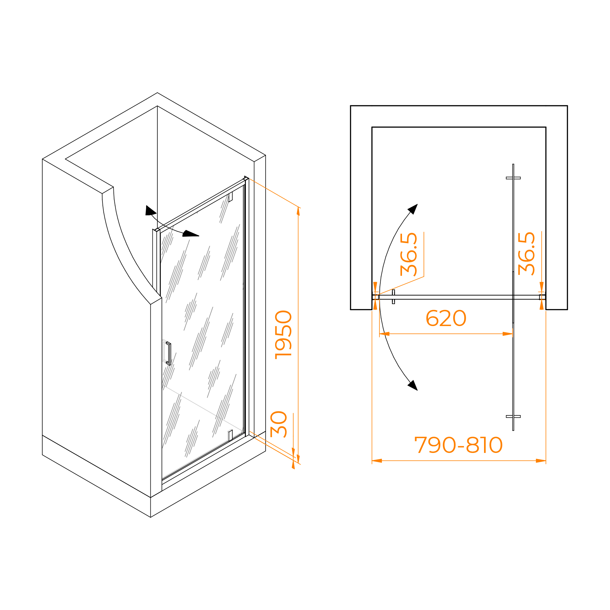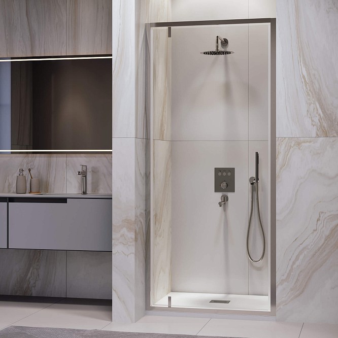 Распашная дверь в нишу RGW Leipzig LE-102 80x195 см хром/ прозрачное 711210208-11