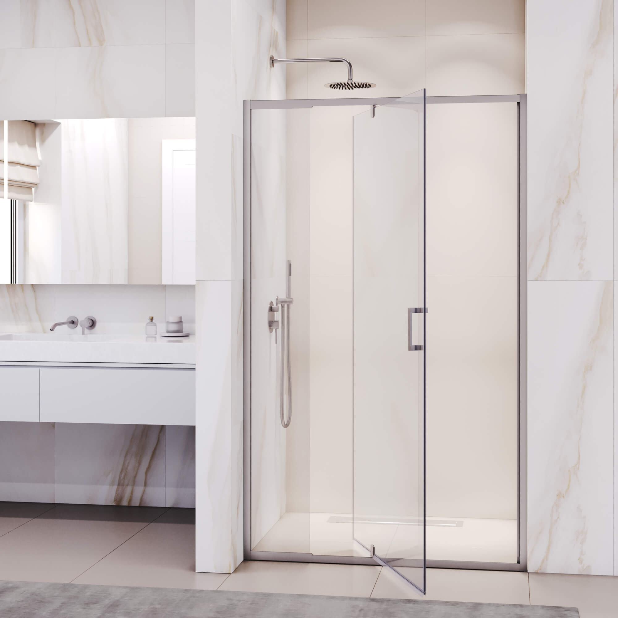Класс герметичности 1 — еще одна особенность, которая отличает эту душевую дверь от конкурентов. Благодаря превосходной технологии герметизации вы можете попрощаться с протечками воды и наслаждаться сухим и комфортным душем. Больше никаких скользких полов и мокрых ковриков для ванной: эта душевая дверь удерживает воду там, где она должна быть, позволяя вам расслабиться и отдохнуть без каких-либо забот.