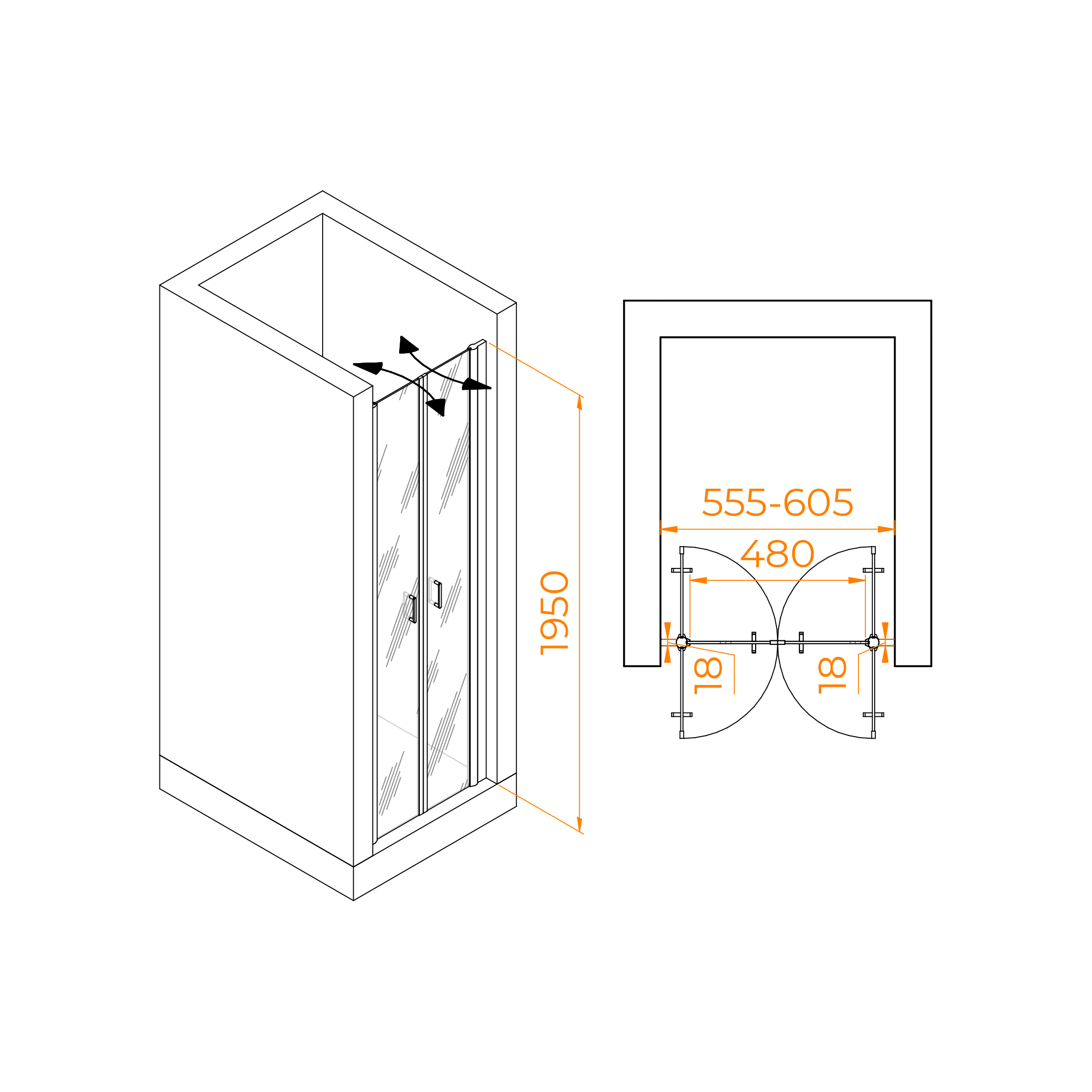 | Конструкция | Распашная (2), ширина входа 62,5 см |