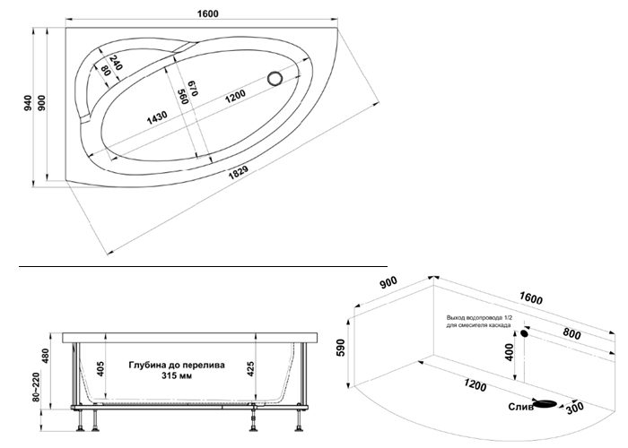 Размеры: 160х55 см