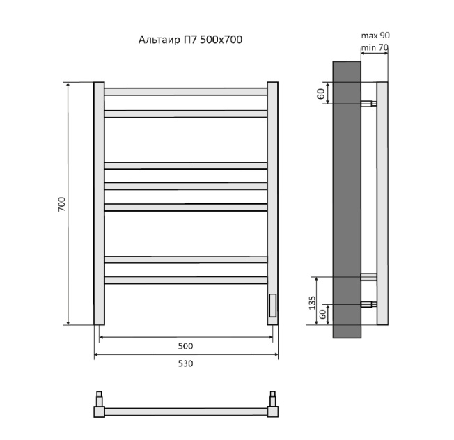 Электрический полотенцесушитель Акватек Альтаир П7 50х70 см черный муар AQ EL KP0770BL quick touch