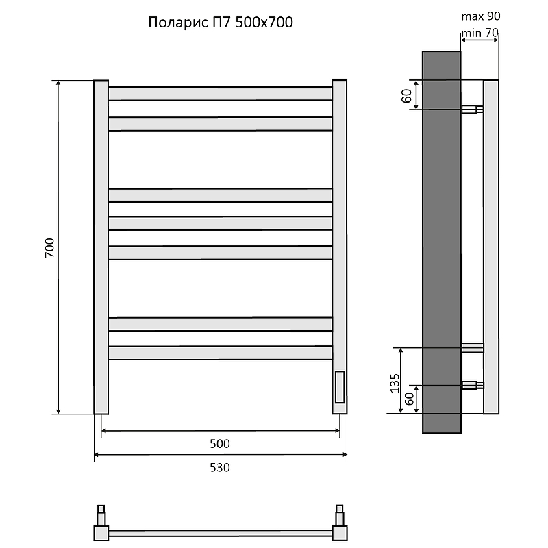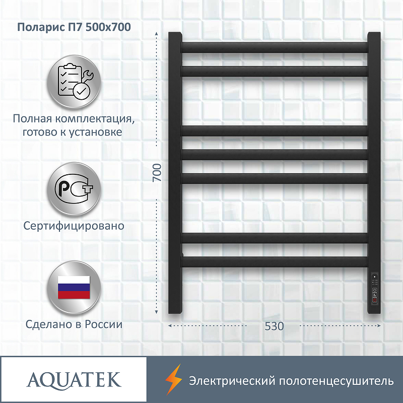 Электрический полотенцесушитель Акватек Поларис П7 50х70 см черный муар AQ EL KO0770BL quick touch