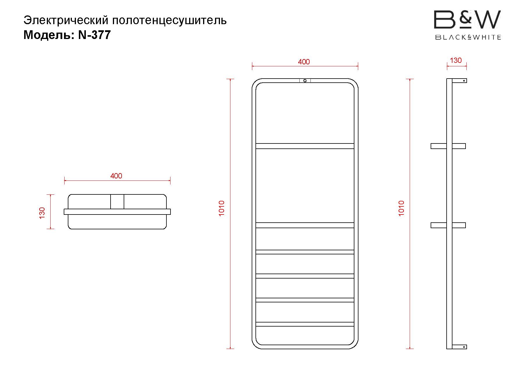 Полотенцесушитель электрический Black & White Moon N-337 B (40х101х13 см) черный матовый 337BN
