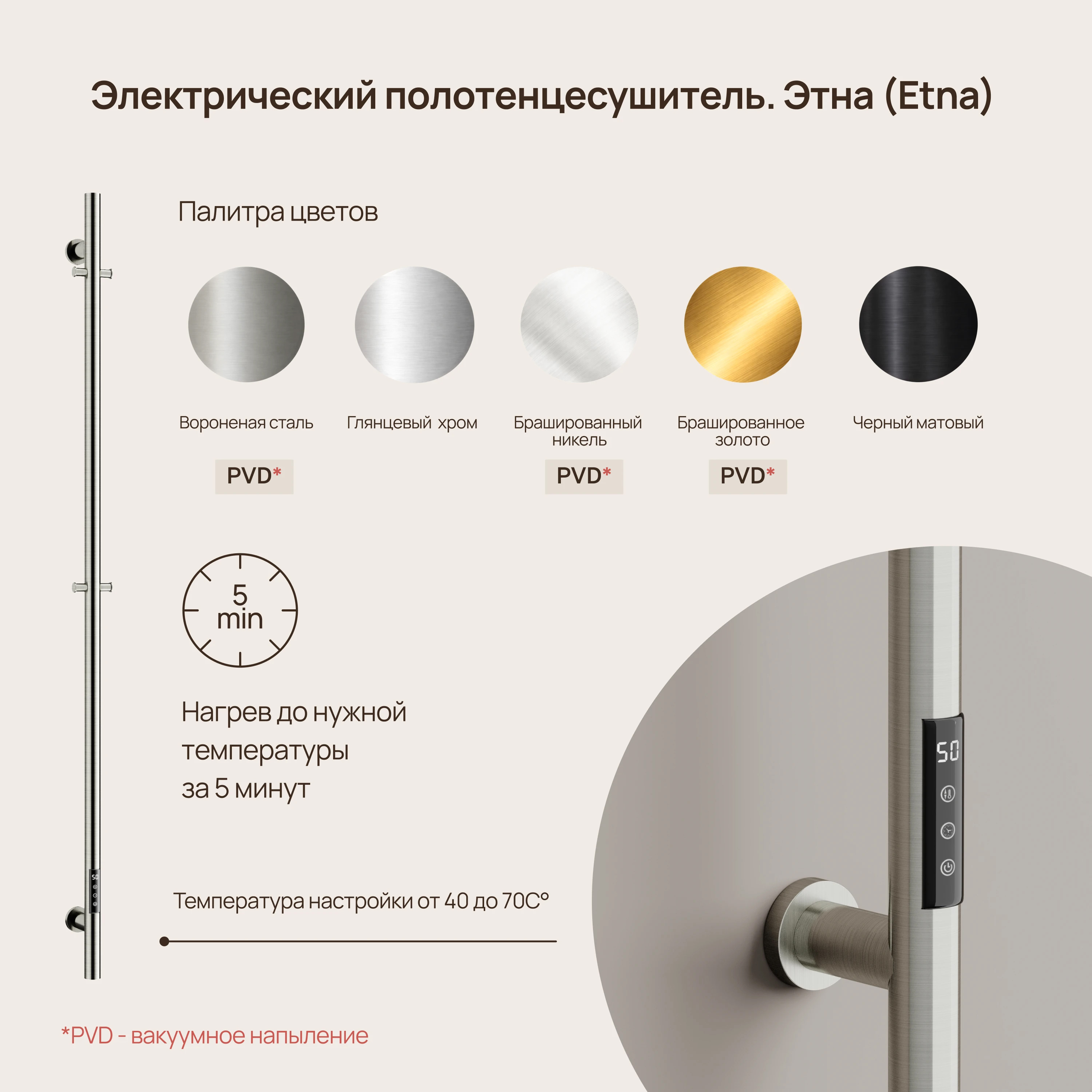 - Полотенцесушитель сухого типа с нагревательным карбоновым волокном