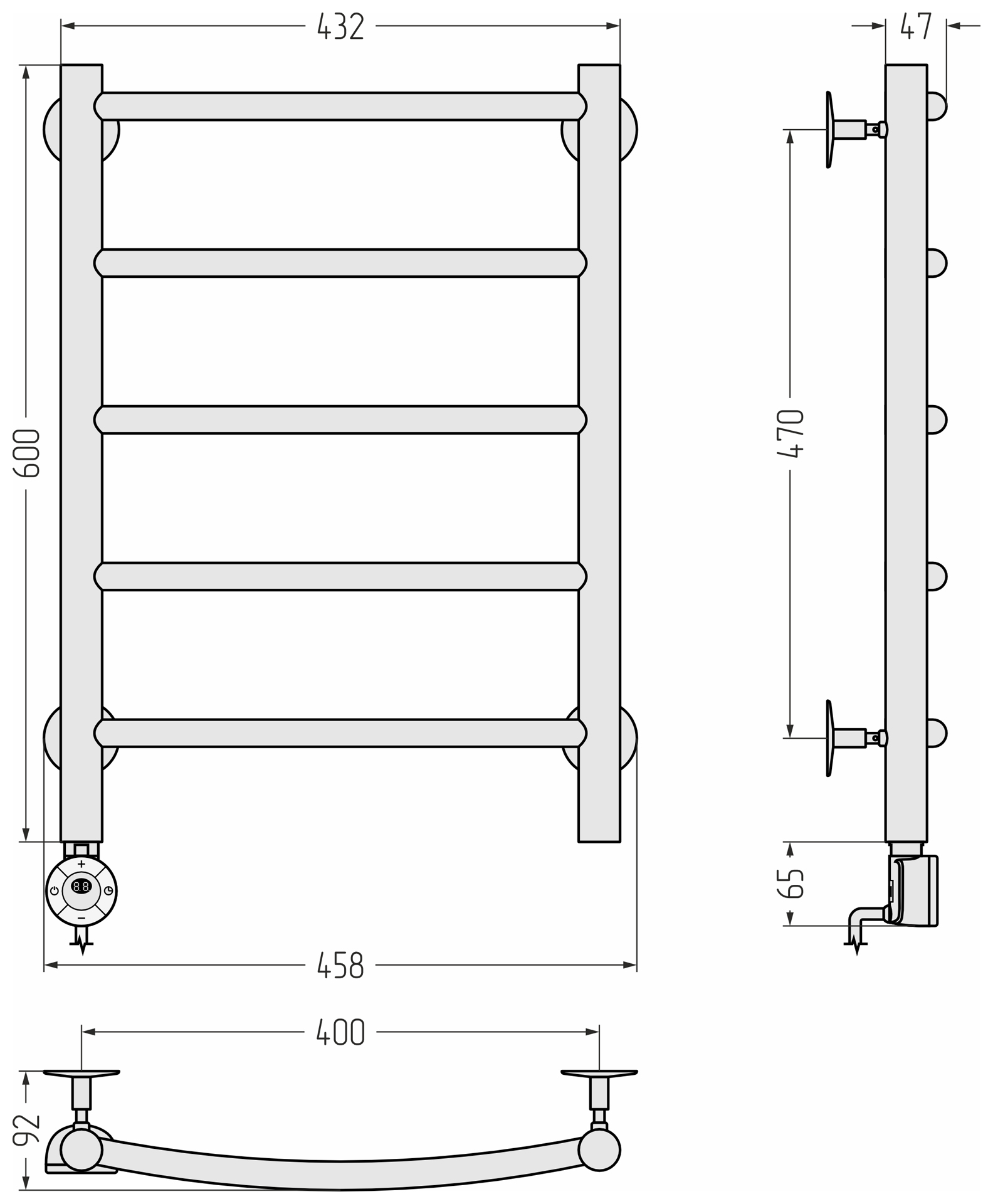 Полотенцесушитель электрический Стилье Формат-12 60х40 черный 31512-6040/31513-6040