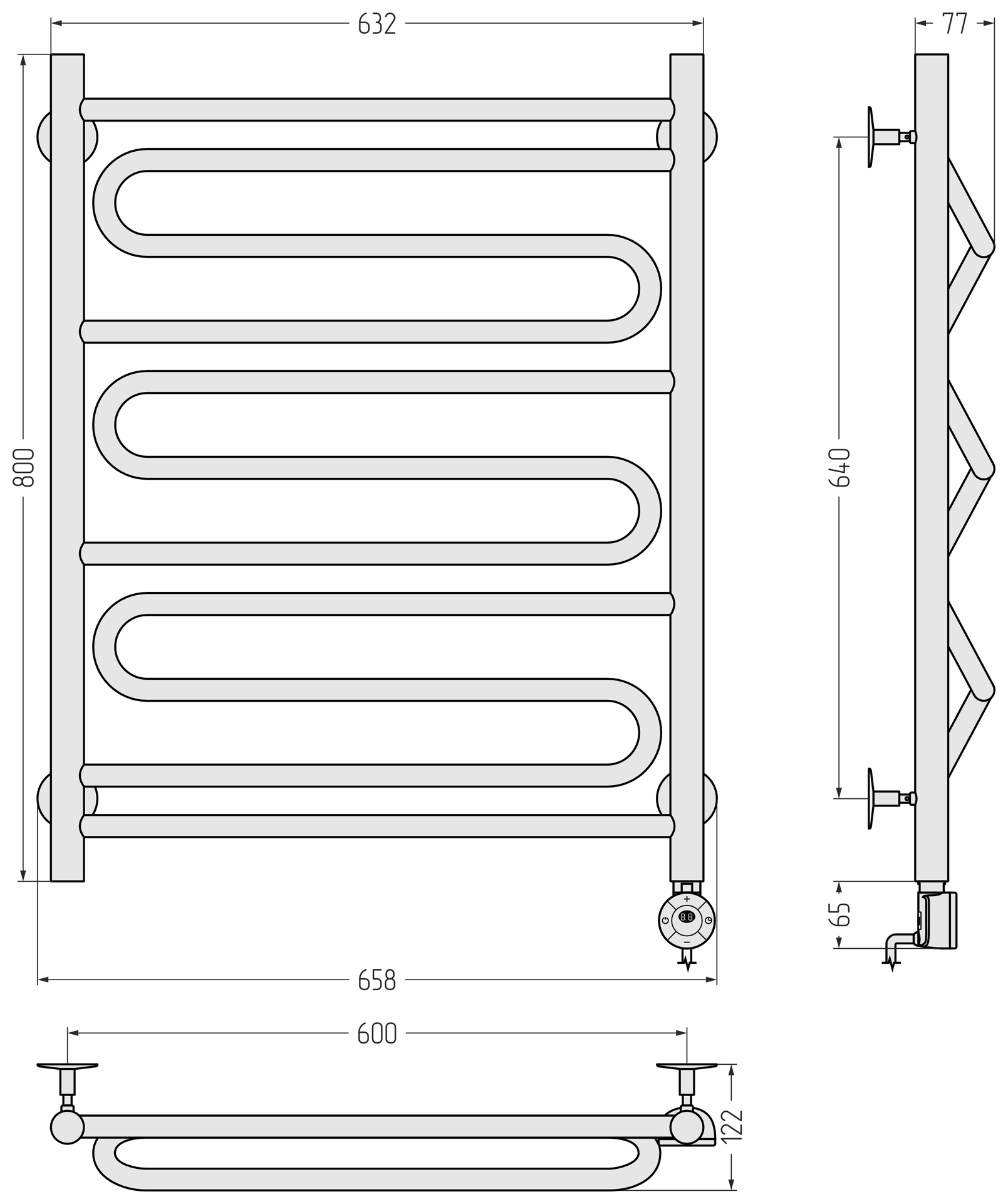 Полотенцесушитель электрический Стилье Формат-22 ТП 80х60 белый 30522-8060