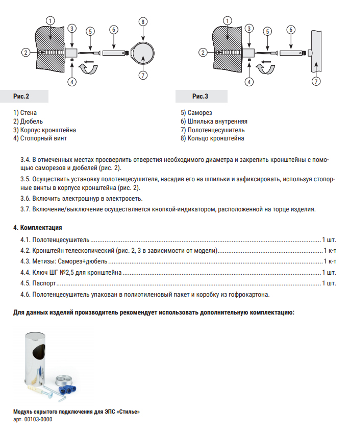 - Кронштейн телескопический (рис. 2, 3 в зависимости от модели) - 1 к-т