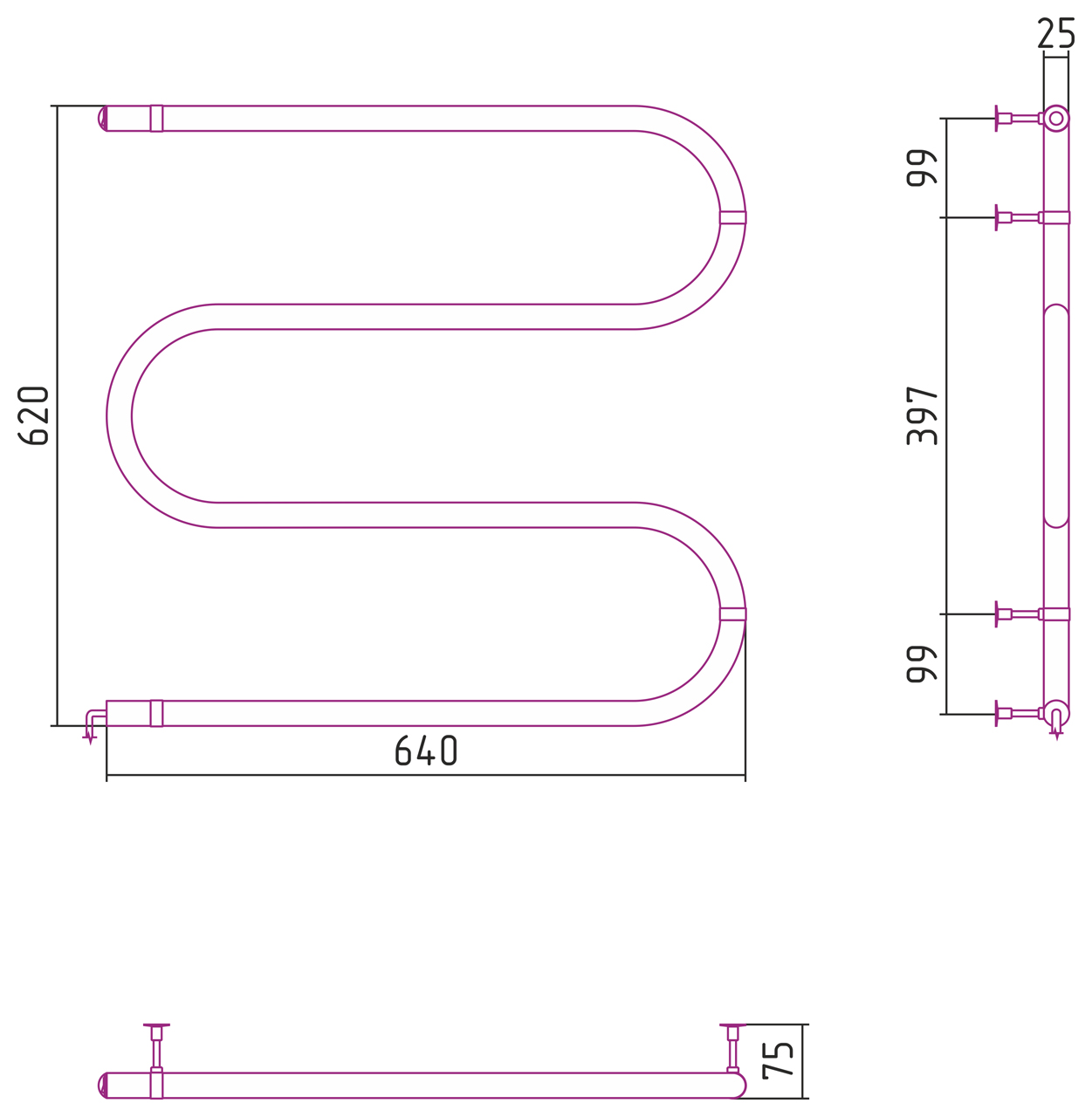 Полотенцесушитель электрический Стилье M-образный 60х60 00503-6060