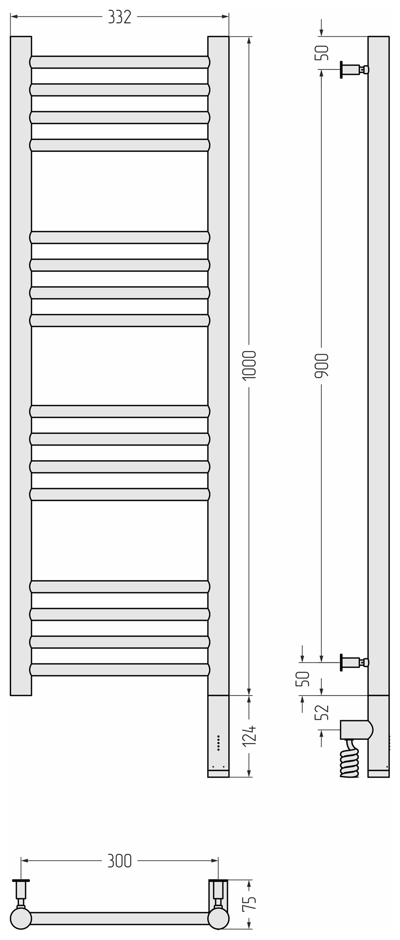 Полотенцесушитель электрический Сунержа Богема 3.0 прямая 100х30 L/R 00-5804-1030/ 00-5805-1030