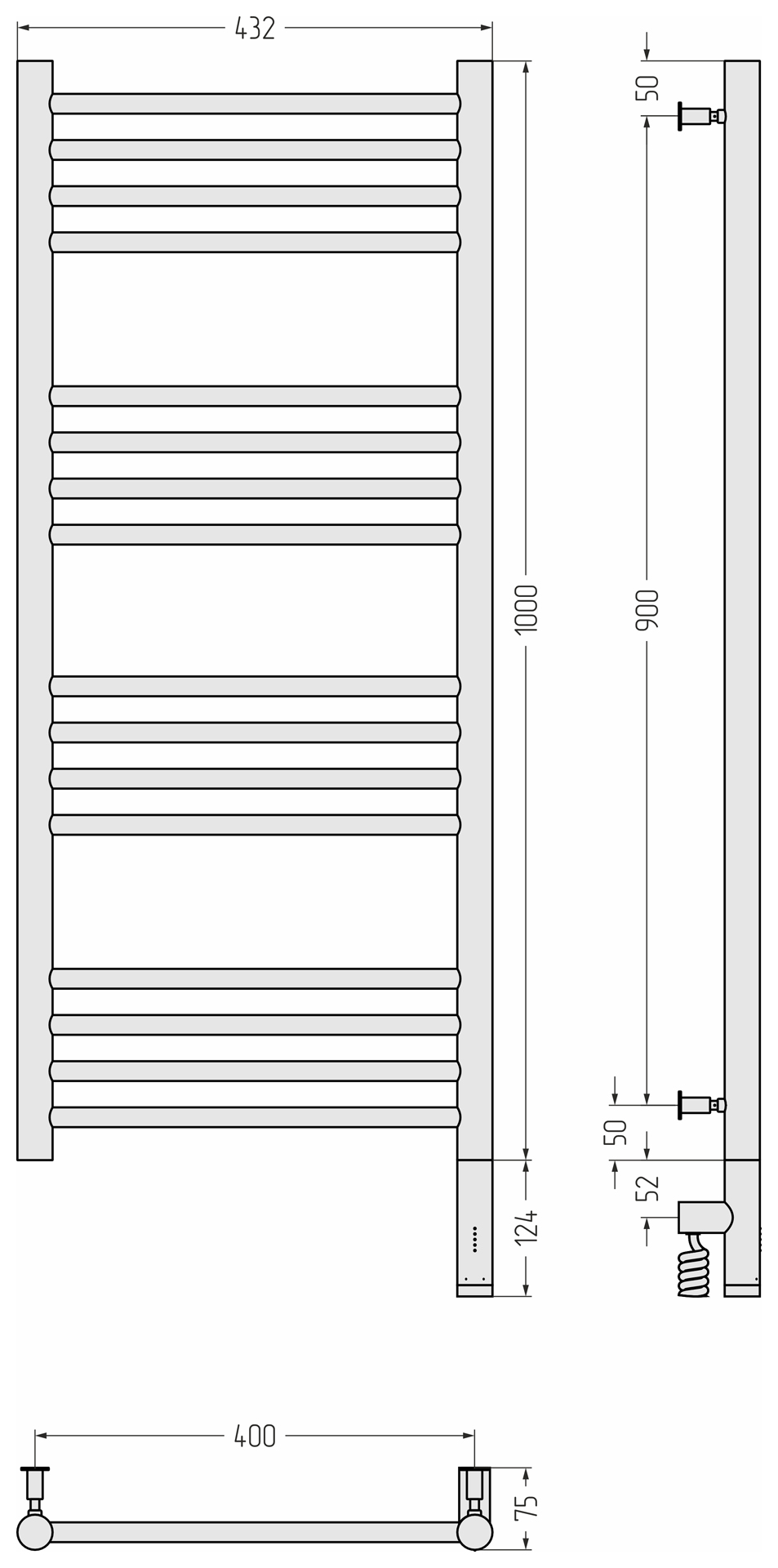 Полотенцесушитель электрический Сунержа Богема 3.0 прямая 100х40 L/R 00-5804-1040/ 00-5805-1040