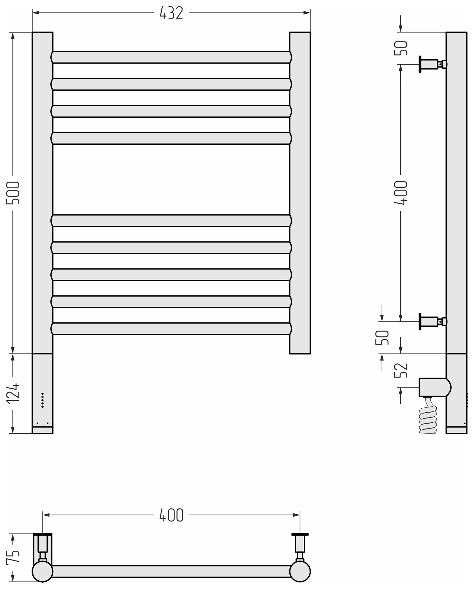 Полотенцесушитель электрический Сунержа Богема 3.0 прямая 50х40 L/R 00-5804-5040/ 00-5805-5040