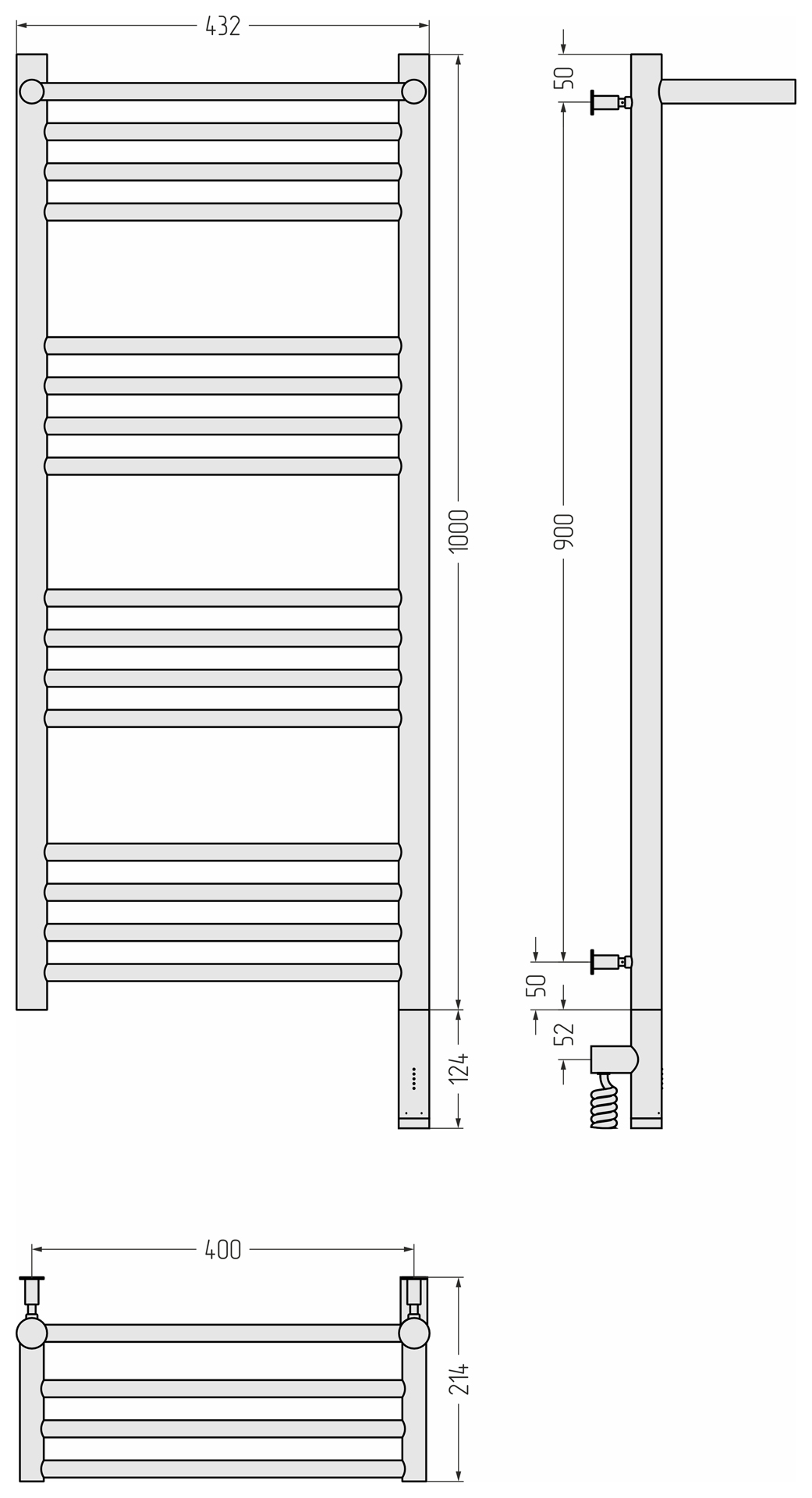 Полотенцесушитель электрический Сунержа Богема 3.0 с полкой 100х40 L/R 00-5806-1040/ 00-5807-1040