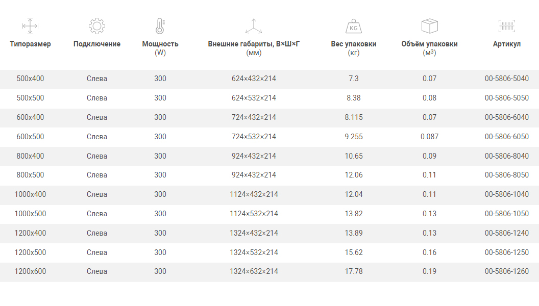 Типоразмер: 120х50 см