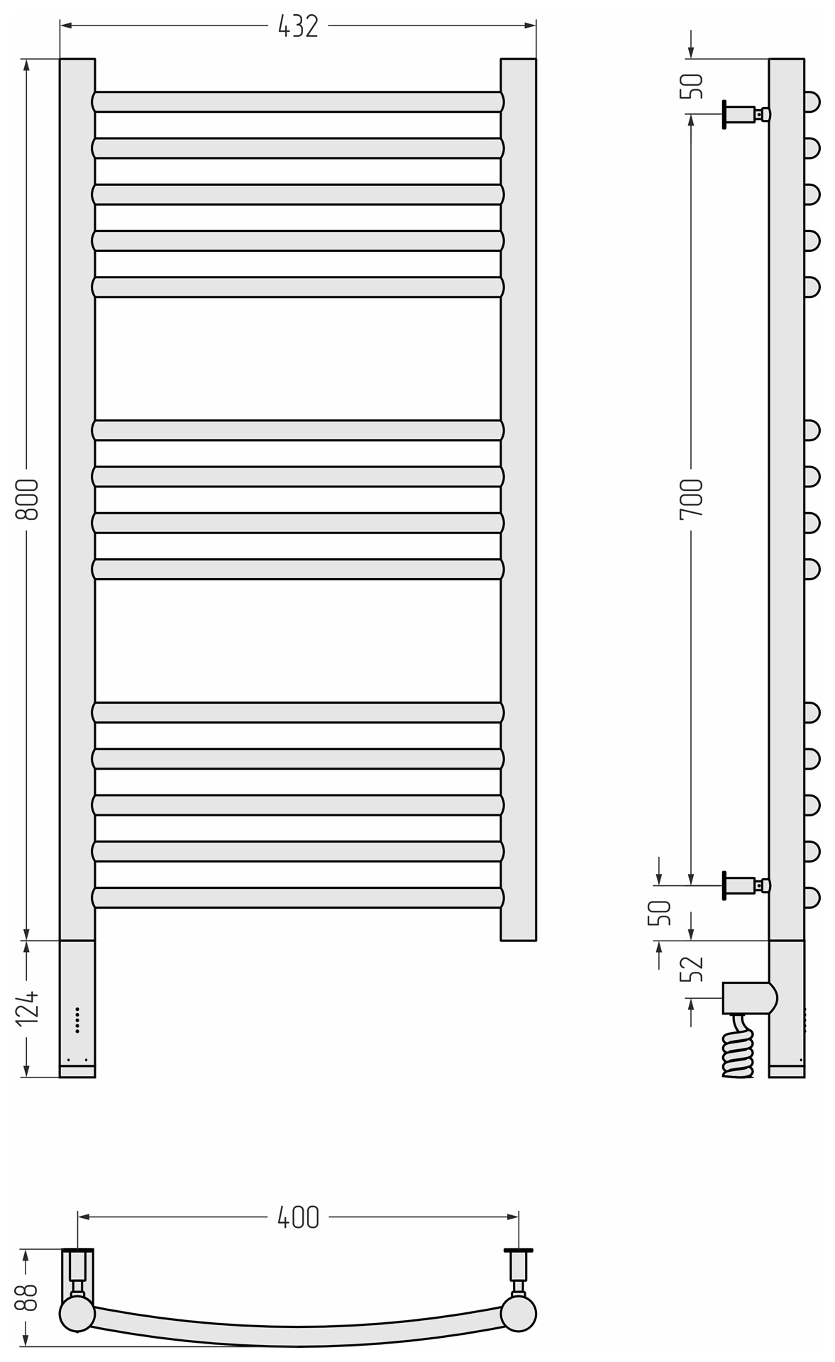 Полотенцесушитель электрический Сунержа Богема 3.0 выгнутая 80х40 L/R 00-5802-8040/ 00-5803-8040