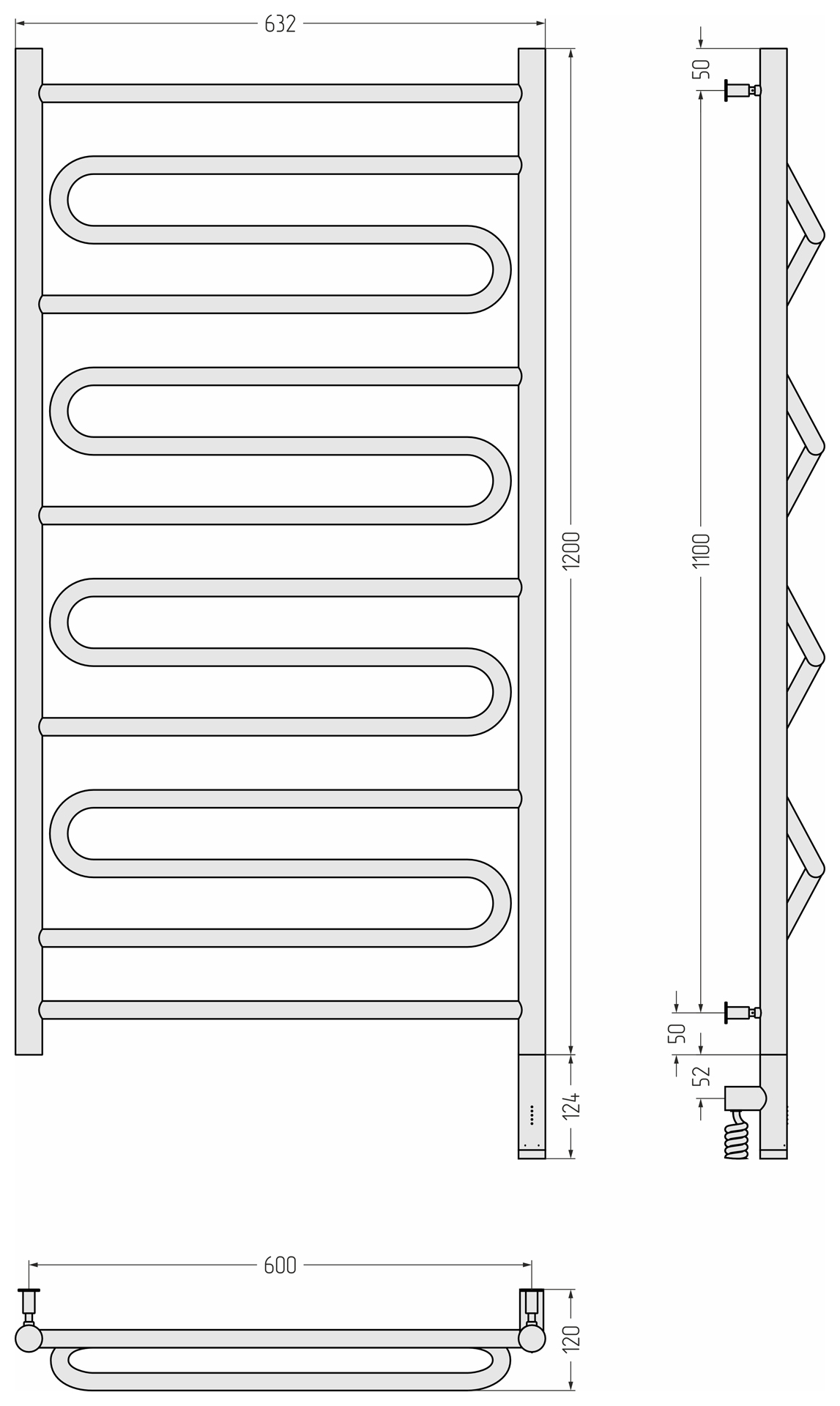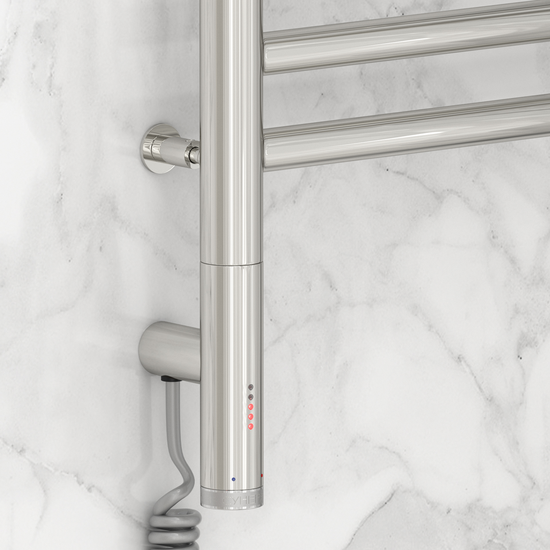 Блок управления МЭМ Сунержа® выполнен в едином стиле с полотенцесушителем и визуально является продолжением коллектора. В зависимости от выбранной модификации МЭМ может быть расположен справа или слева.