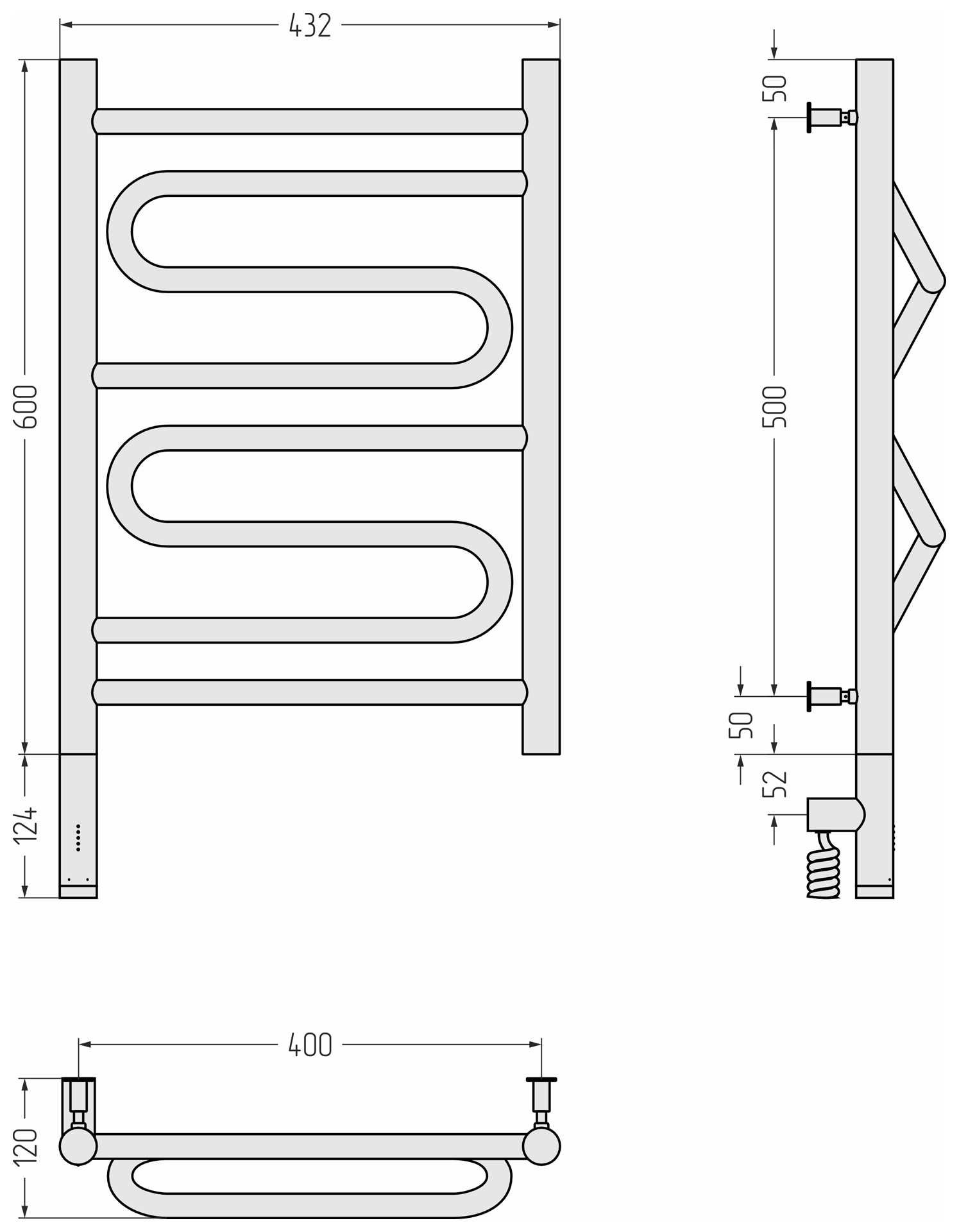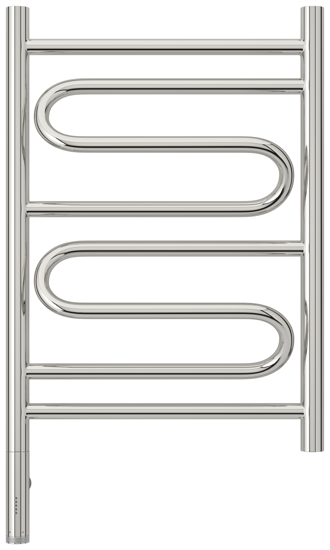 Блок управления МЭМ Сунержа® выполнен в едином стиле с полотенцесушителем и визуально является продолжением коллектора. В зависимости от выбранной модификации МЭМ может быть расположен справа или слева.