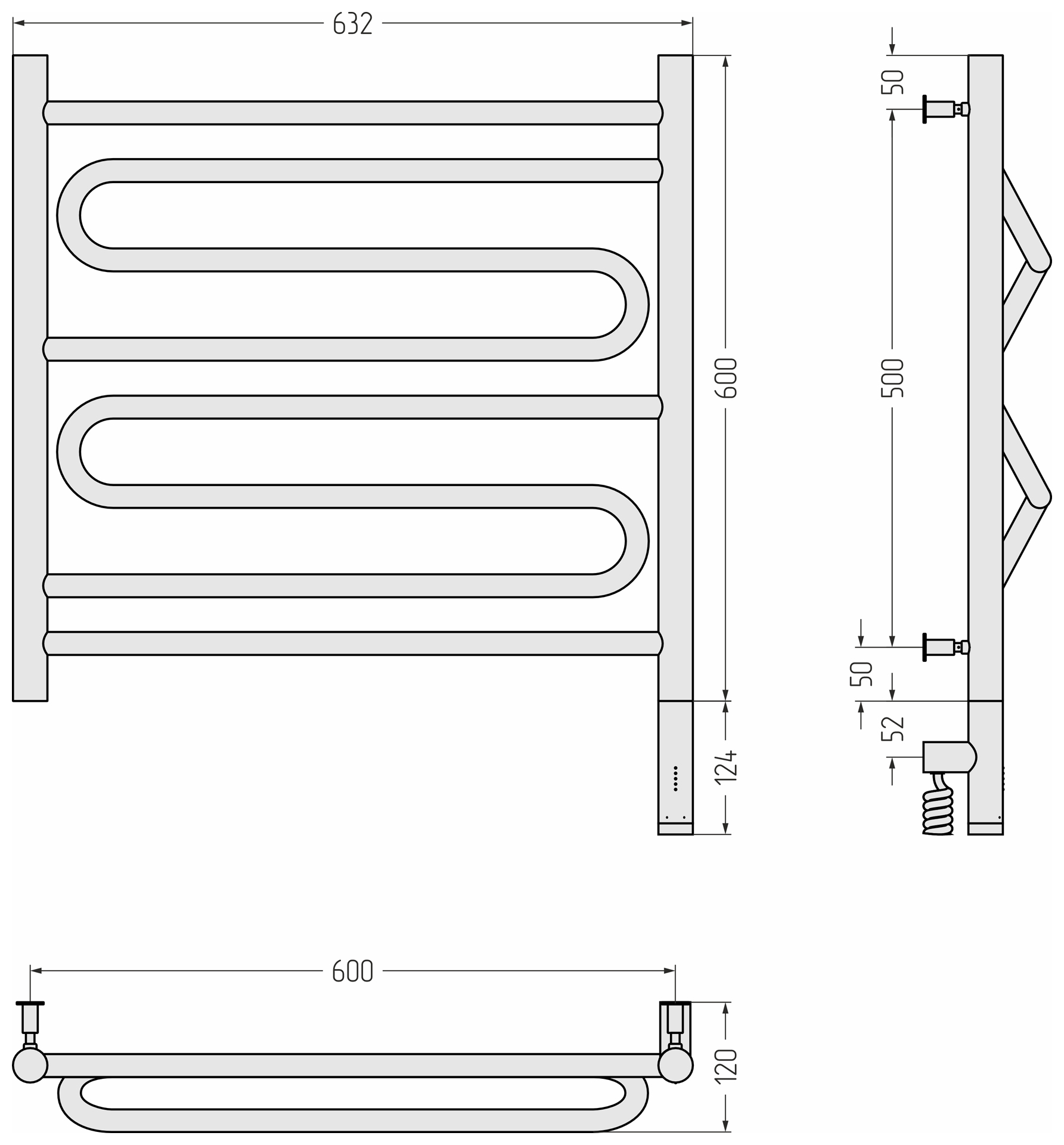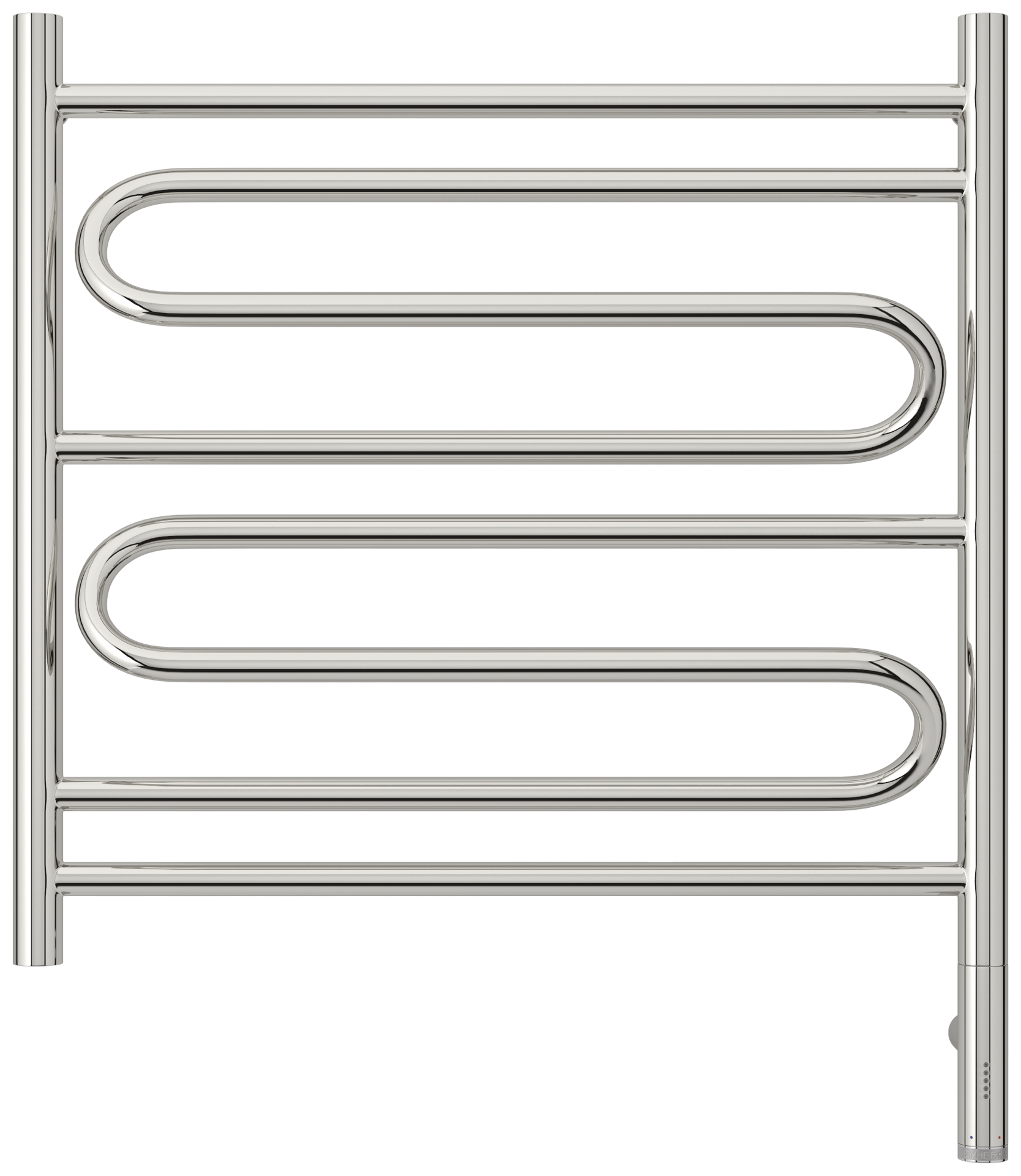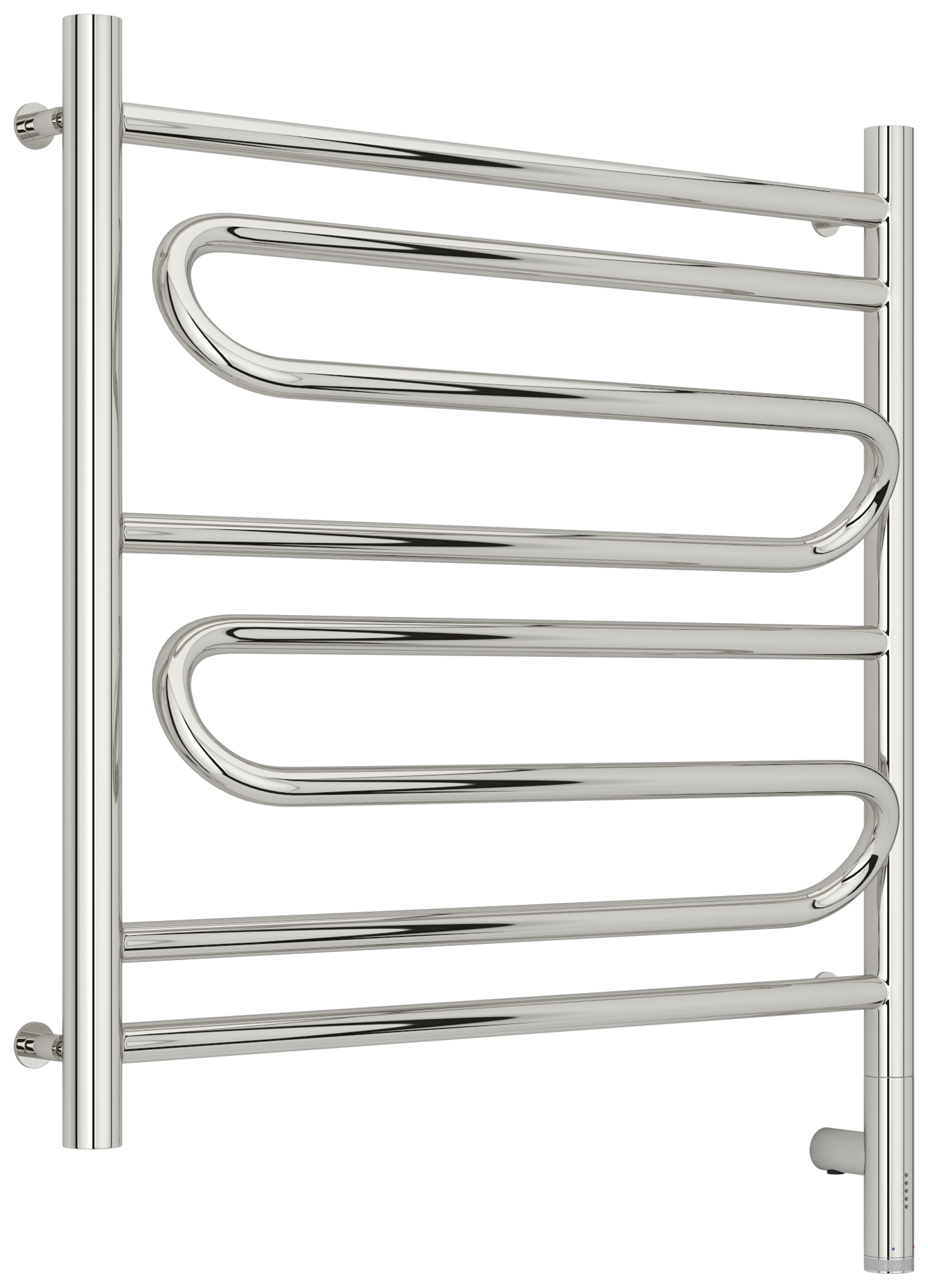 Блок управления МЭМ Сунержа® выполнен в едином стиле с полотенцесушителем и визуально является продолжением коллектора. В зависимости от выбранной модификации МЭМ может быть расположен справа или слева.