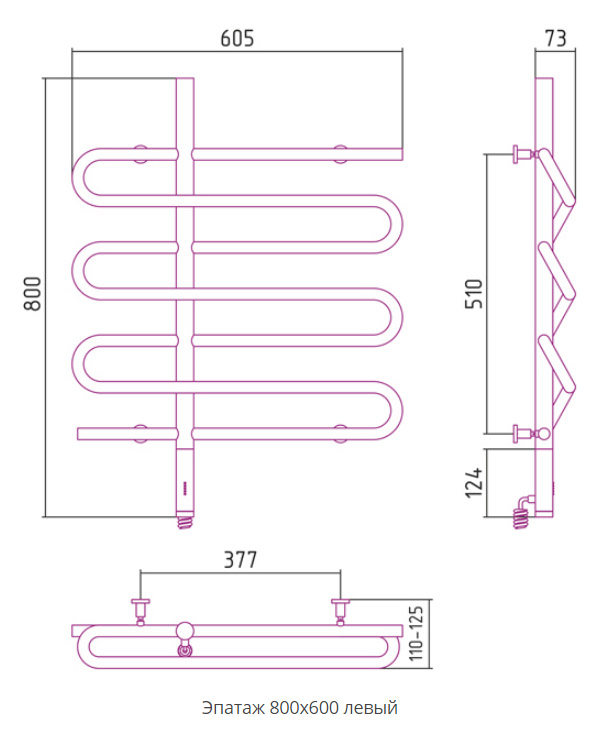 Полотенцесушитель электрический Сунержа Эпатаж 3.0 80х60 L/R 00-5850-8060/ 00-5851-8060