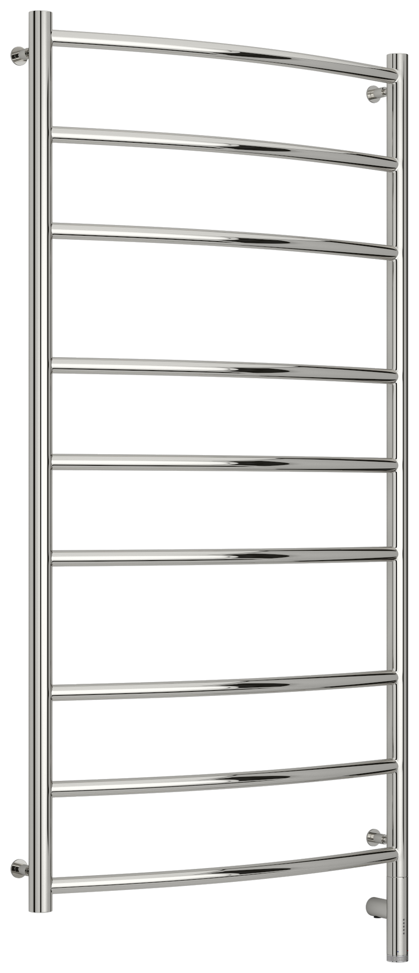 Полотенцесушитель изготовлен из пищевой нержавеющей стали. Благодаря ручной сварке по методу TIG швы у изделия ровные и практически незаметные, а многоуровневая шлифовка и электроплазменная полировка позволили сделать поверхность труб завораживающе зеркальной.