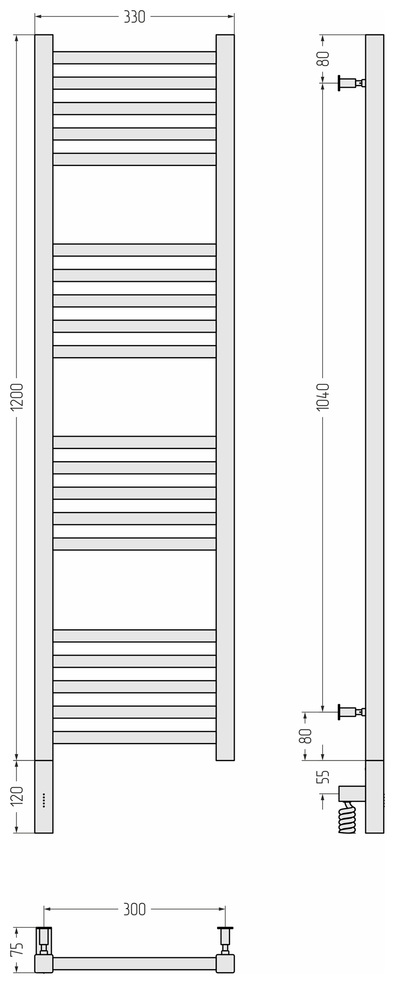 Полотенцесушитель электрический Сунержа Модус 3.0 120х30 L/R 00-5700-1230/ 00-5701-1230
