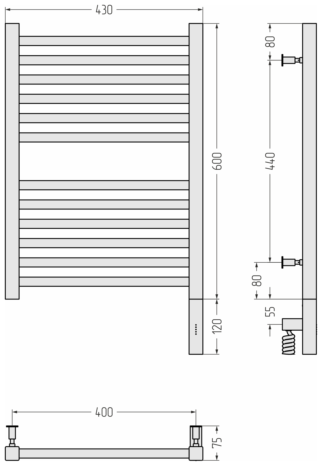 Полотенцесушитель электрический Сунержа Модус 3.0 60х40 L/R 00-5700-6040/ 00-5701-6040