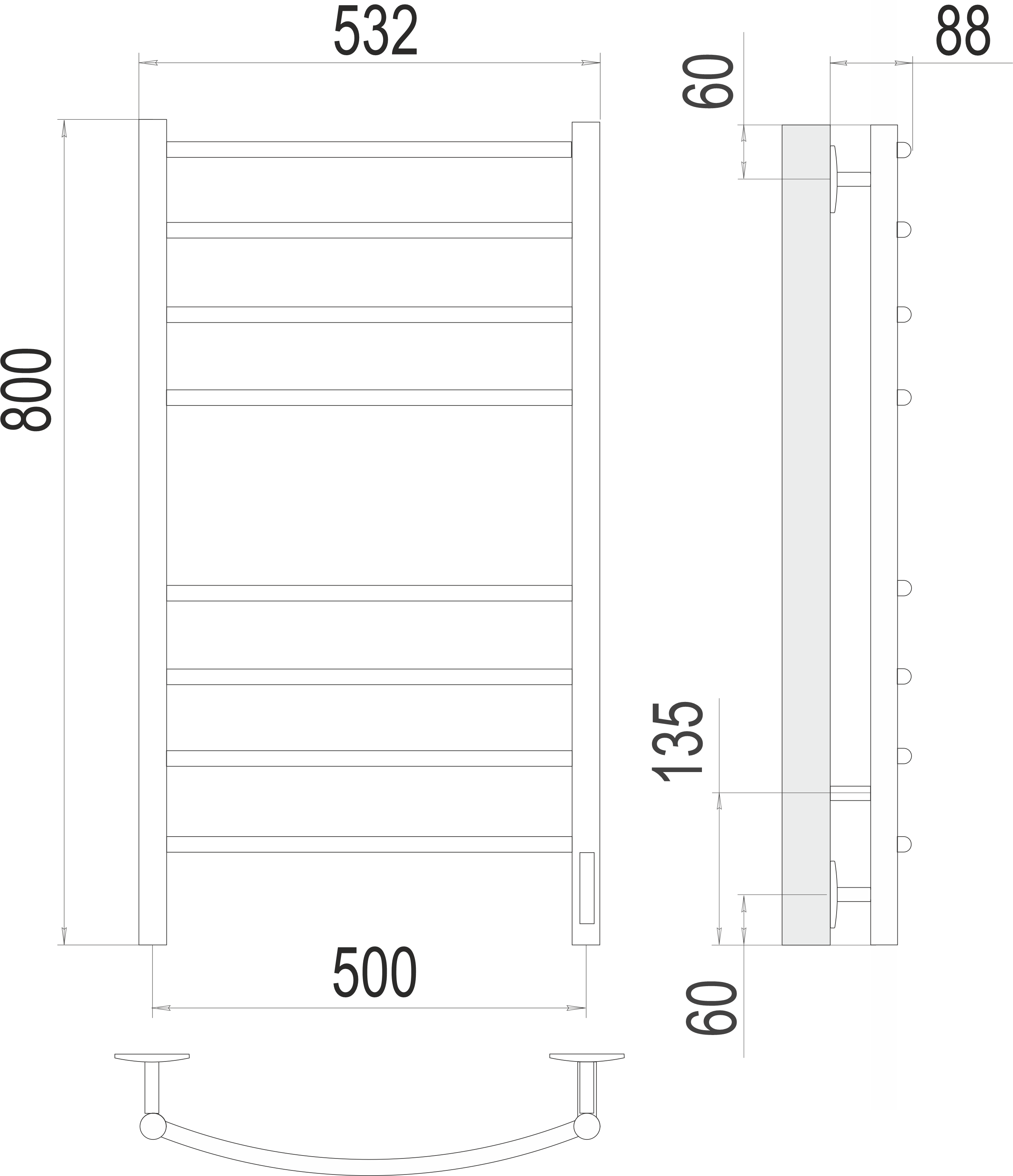 Полотенцесушитель электрический Terminus Классик КС П8 50х80 (new встроен диммер) черный 4670078527608