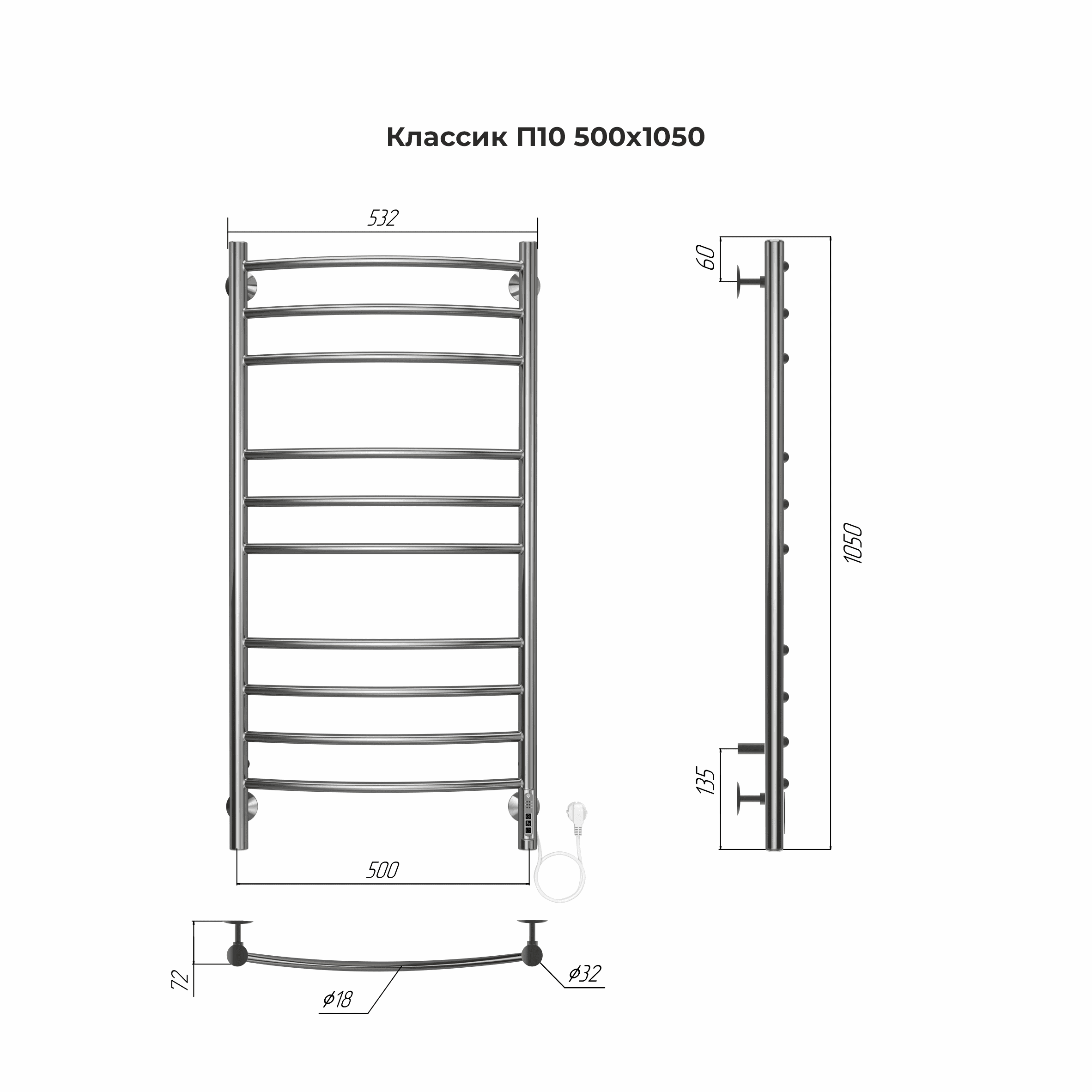 Полотенцесушитель электрический Terminus Классик П10 50х105 (quick touch) 4670078544469