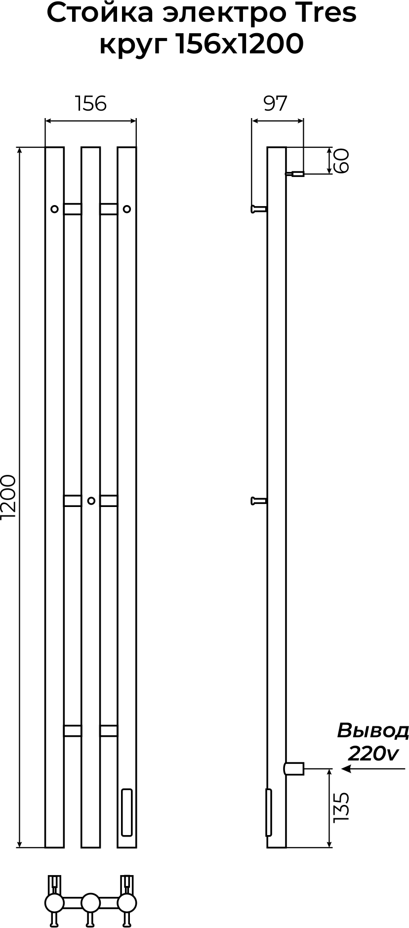 Полотенцесушитель-стойка электрический Terminus Tres (круг) 120 см золото 4670078566362