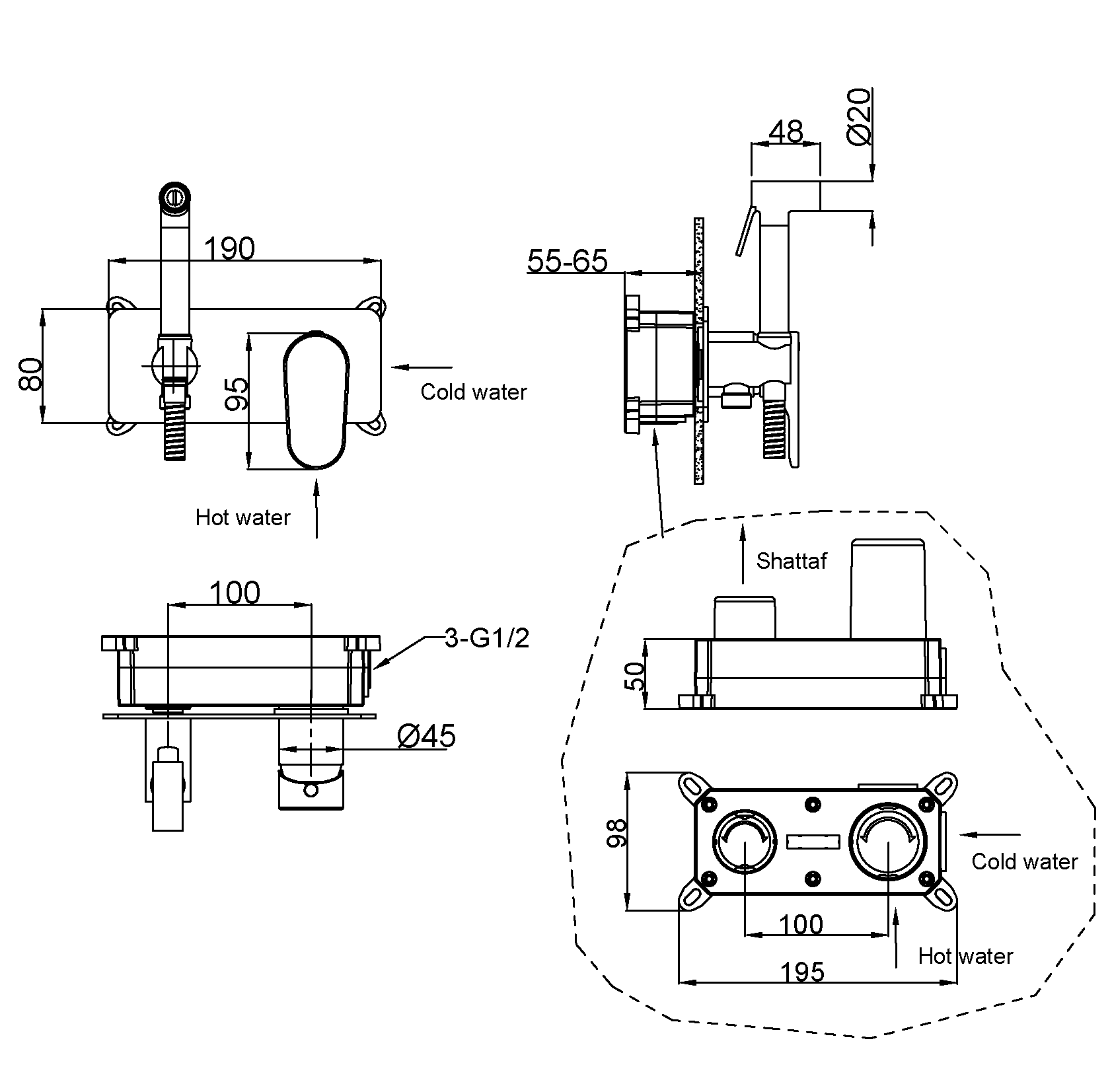 | В комплекте | Смеситель, внутренняя часть, душевой шланг, держатель для душа |