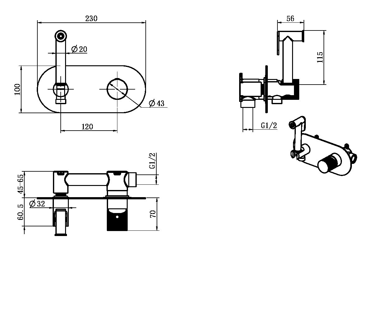 | В комплекте | Смеситель, внутренняя часть, душевой шланг, держатель для душа |