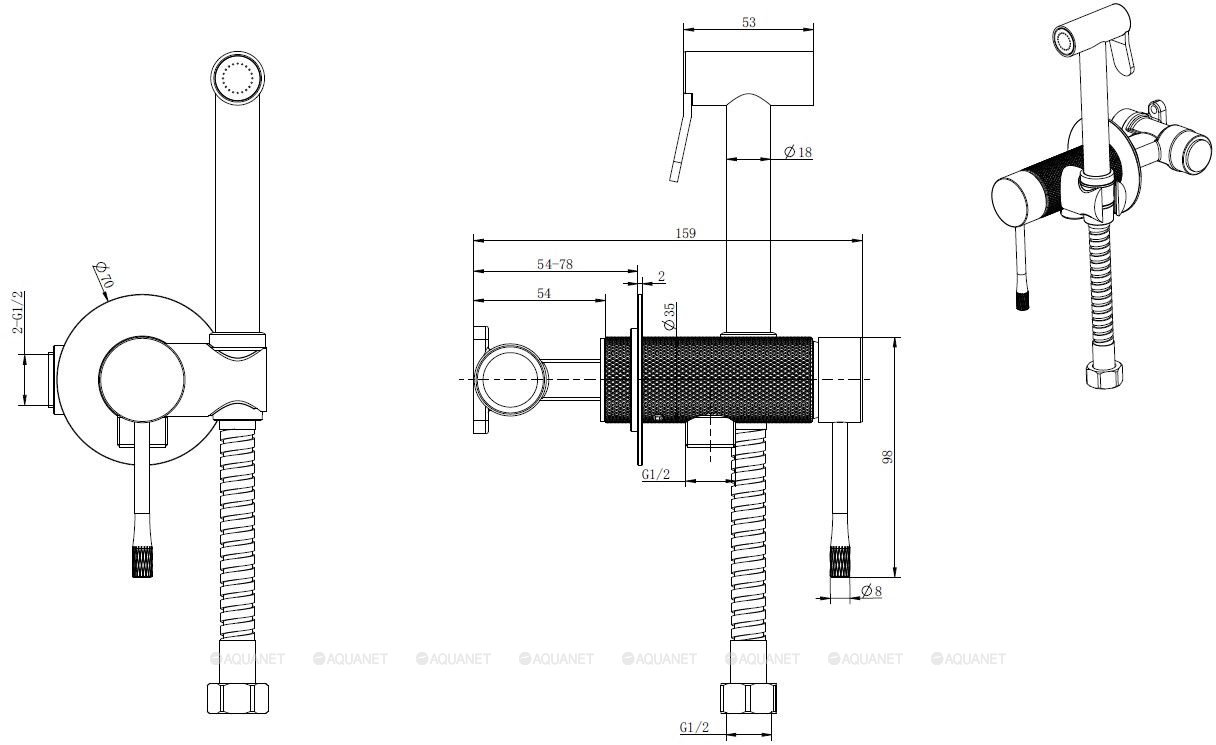 | В комплекте | Скрытая часть, гигиенический душ, шланг, держатель |