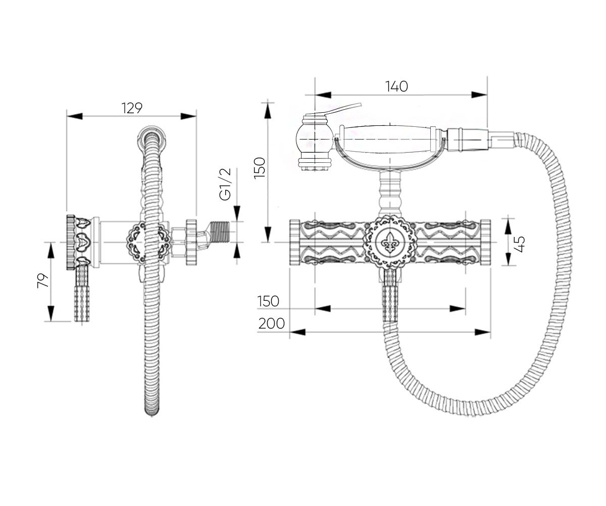 Гигиенический душ настенный со смесителем Bronze de Luxe Виндзор бронза 10128