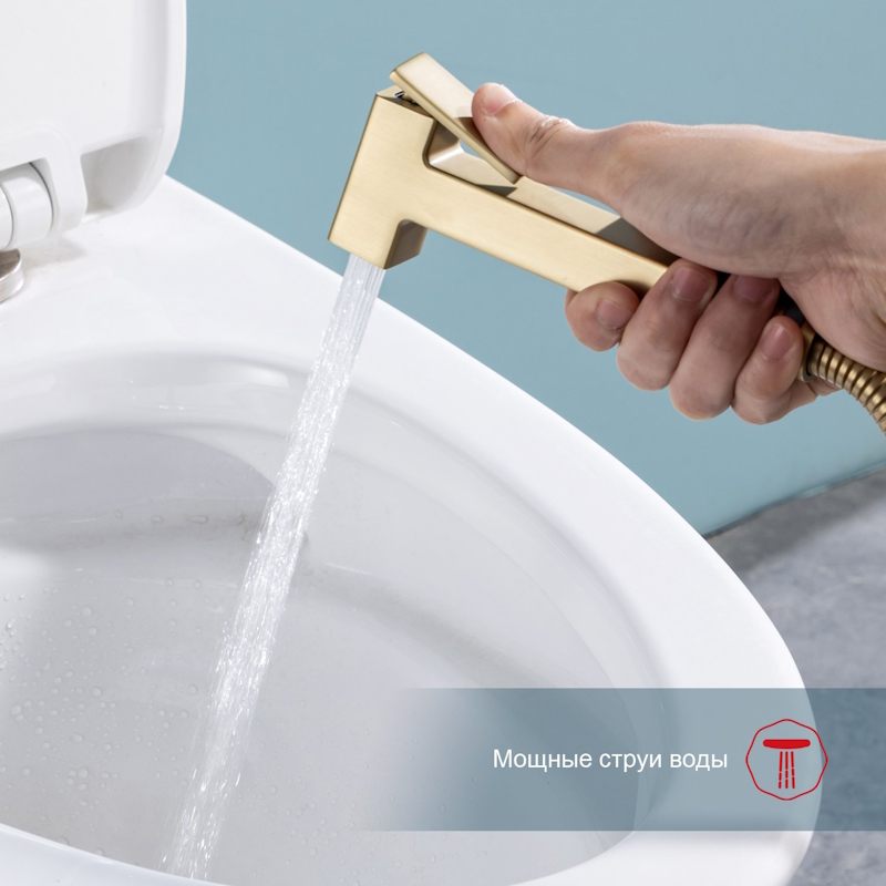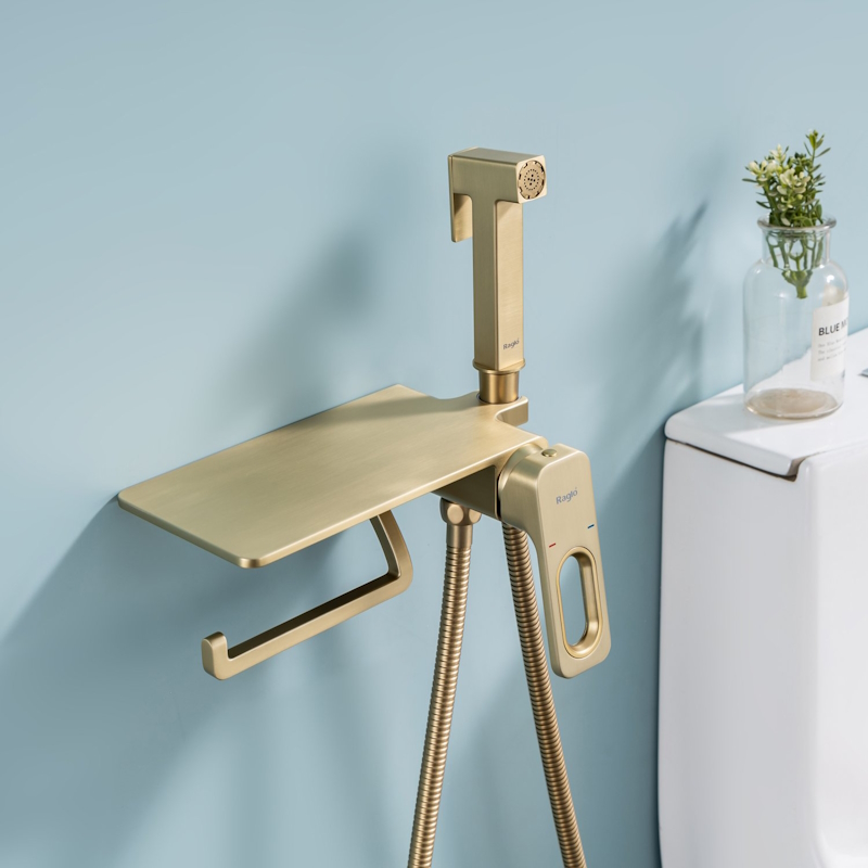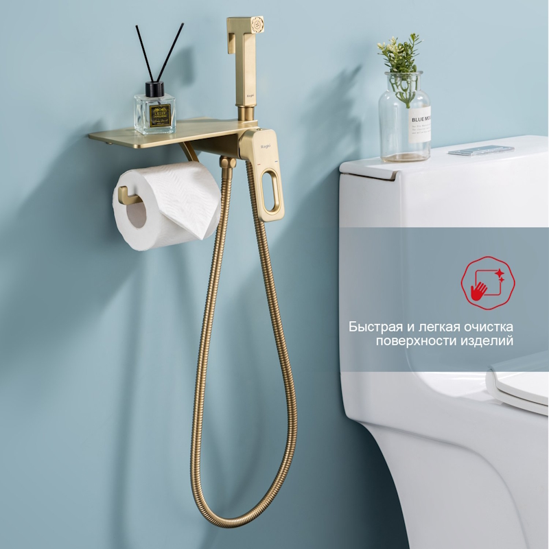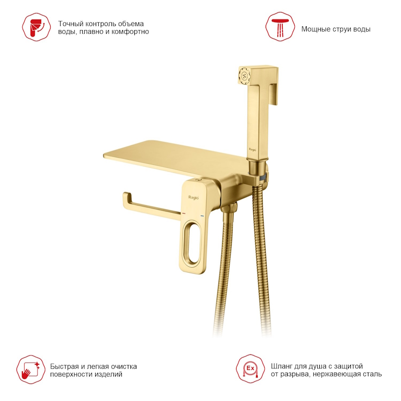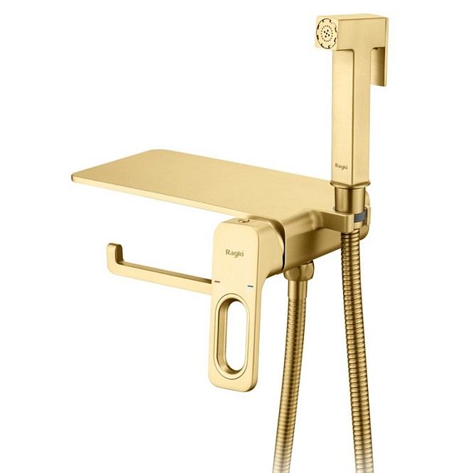 Гигиенический душ со смесителем, полкой и бумагодержателем Raglo сатин золотой R51.55.03