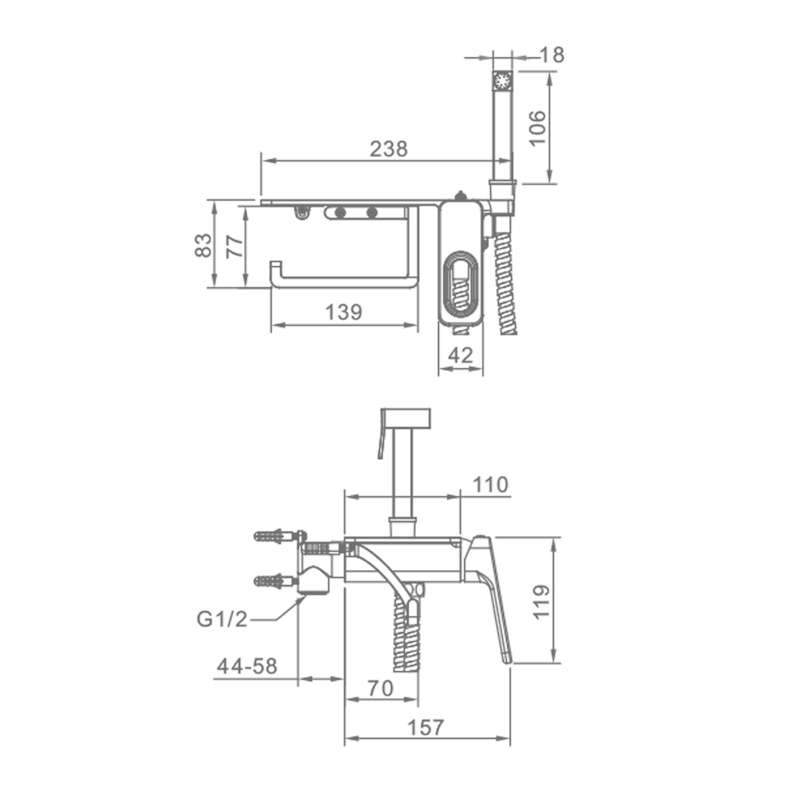 | В комплекте | Смеситель с полкой, бумагодержатель, лейка, шланг, внутренняя часть |