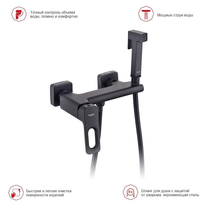 Гигиенический душ со смесителем Raglo черный матовый R51.51.06