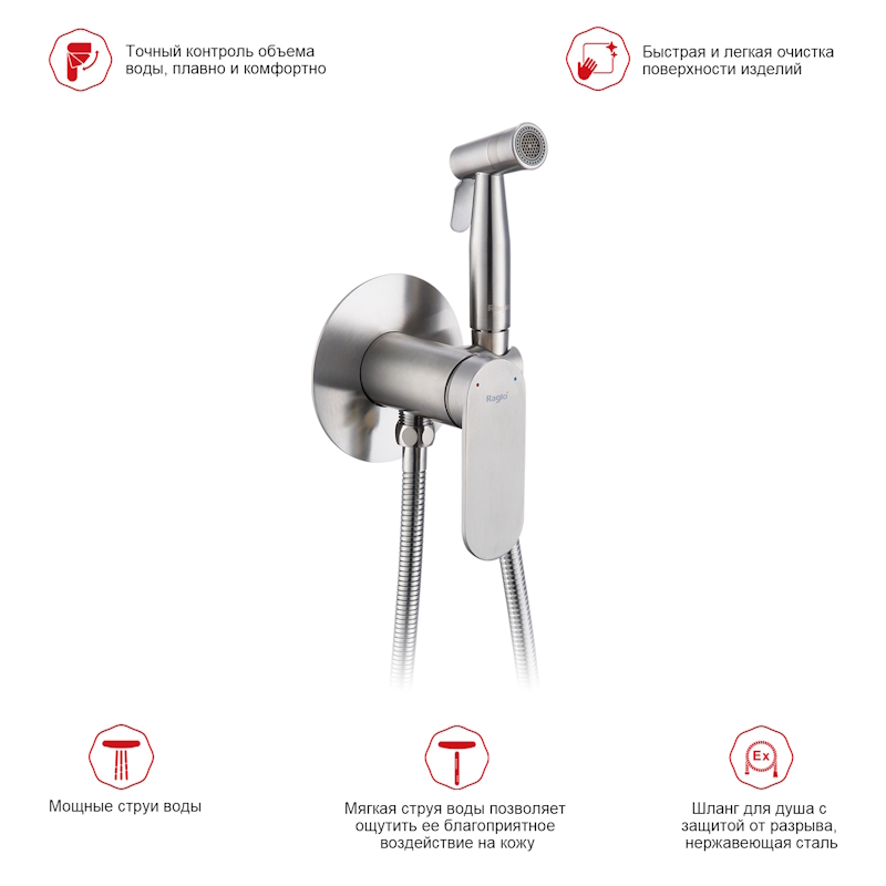 Гигиенический душ со смесителем встраиваемый Raglo сатин R10.52.05