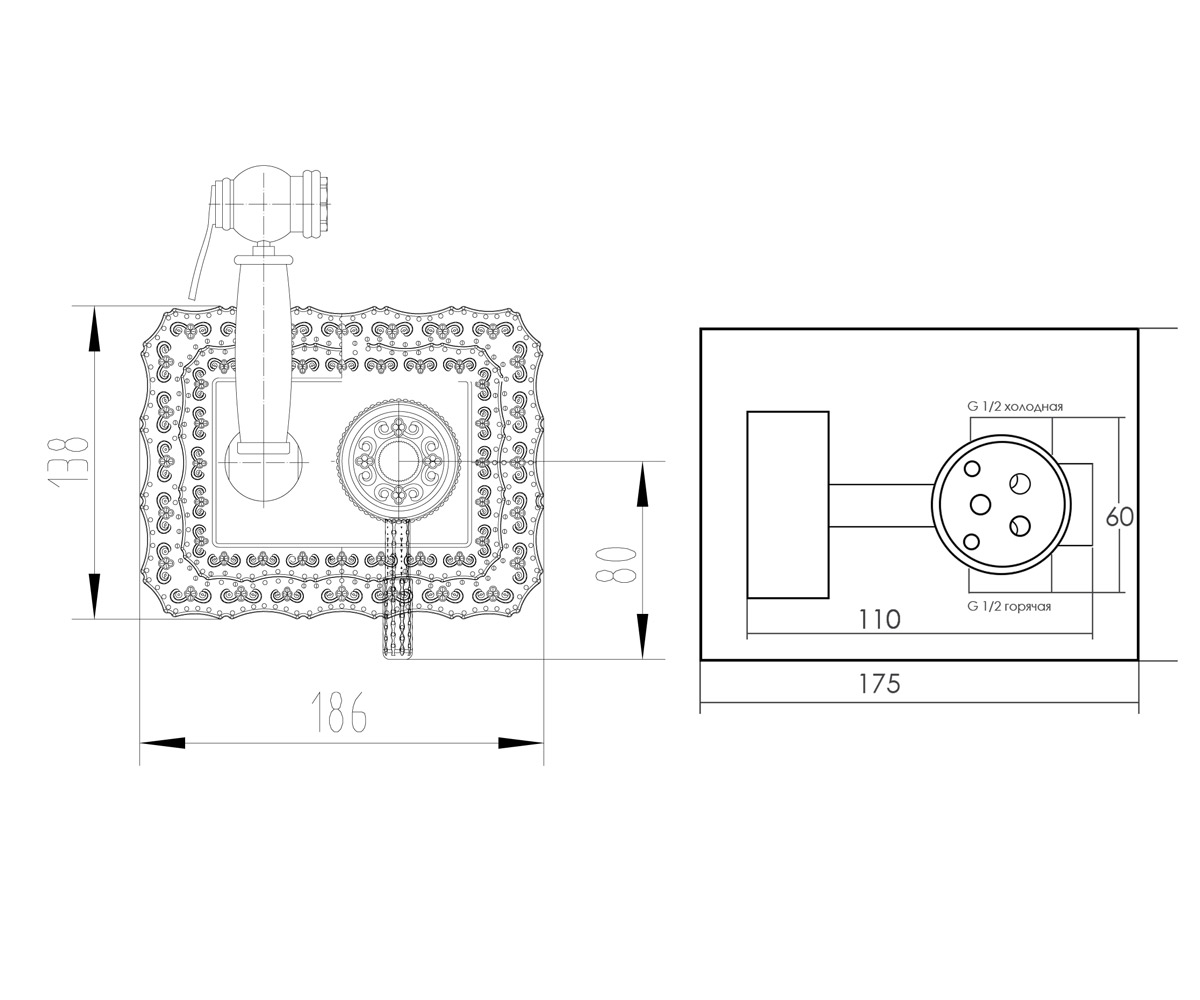 Гигиенический душ встраиваемый Bronze de Luxe Виндзор бронза 10136