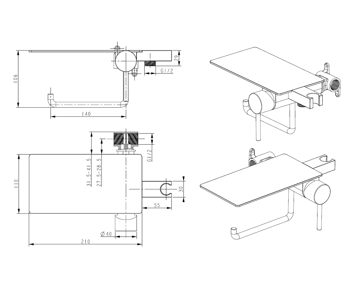 | В комплекте | Смеситель, гигиеническая лейка, шланг, полка, держатели, встраиваемый комплект |