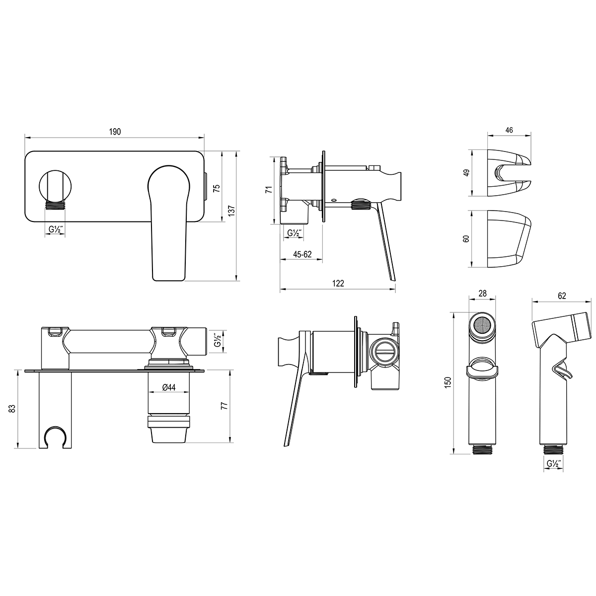 | Ручной душ, см | 2,8х15/ регулятор напора |