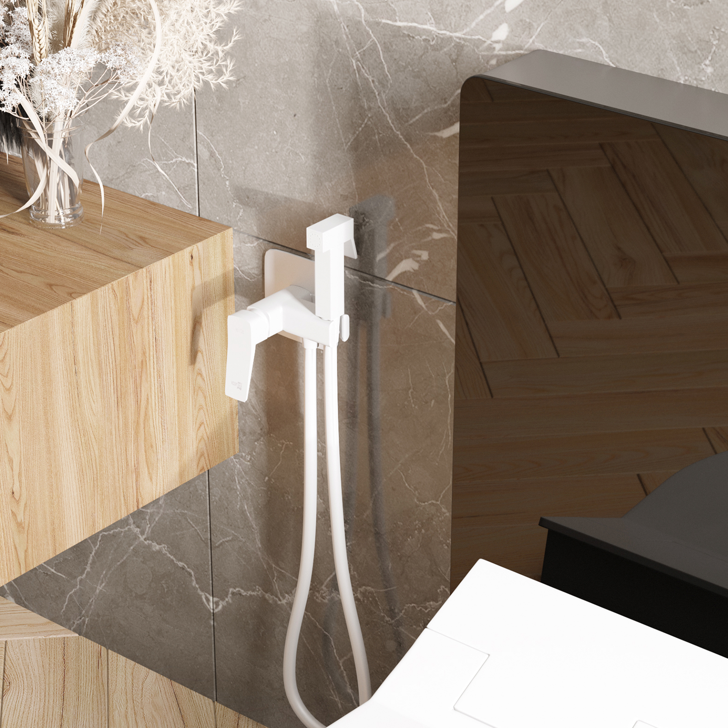 Встраиваемый смеситель с гигиеническим душем WasserKRAFT Зале Saale белый матовый 9538