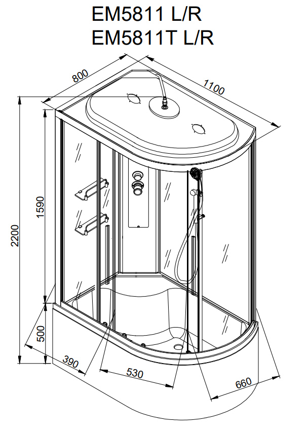 Душевая кабина AvaCan 110х80х220 см хром/прозрачное EM5811LLEDT/ EM5811RLEDT