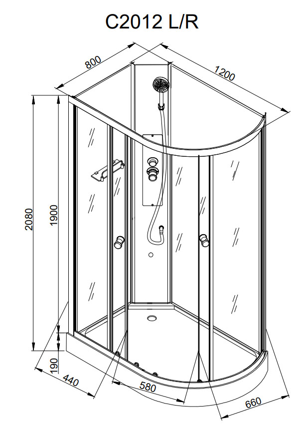 Душевая кабина AvaCan C2012LN/ C2012RN без крыши 120х80х208 см хром матовый/матовое