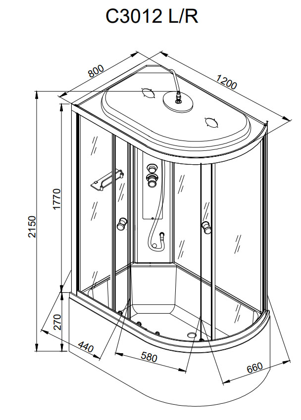 Душевая кабина AvaCan C3012L/ C3012R стандартная 120х80х215 см хром матовый/матовое