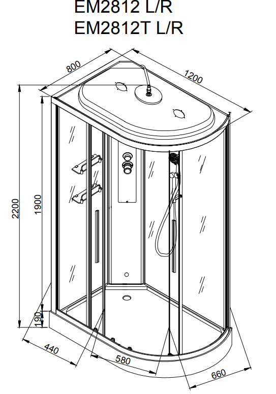 Душевая кабина AvaCan EM2812LT/ EM2812RT стандартная 120х80х220 см хром/прозрачное