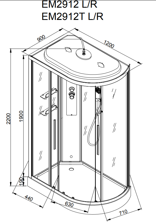 Душевая кабина AvaCan EM2912L/ EM2912R стандартная 120х90х220 см хром/матовое